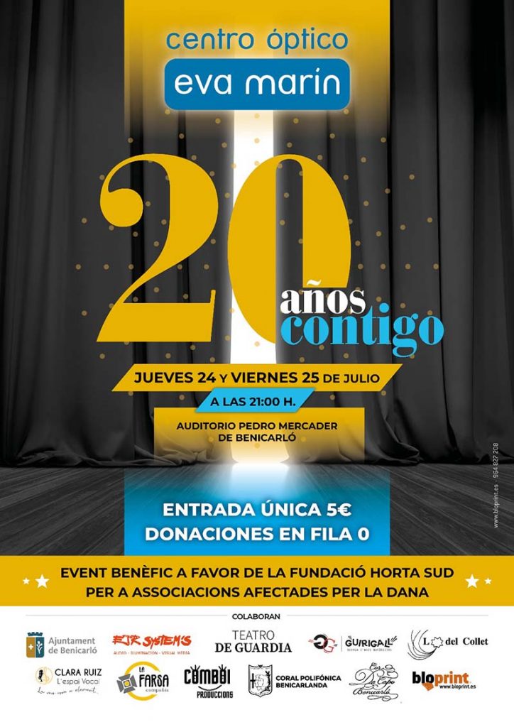 El centre optic Eva Marin celebra els seus 20 anys amb un teatre benefic a favor de la fundació Horta Sud per a associacions afectades per la DANA del passat octubre de 2024.