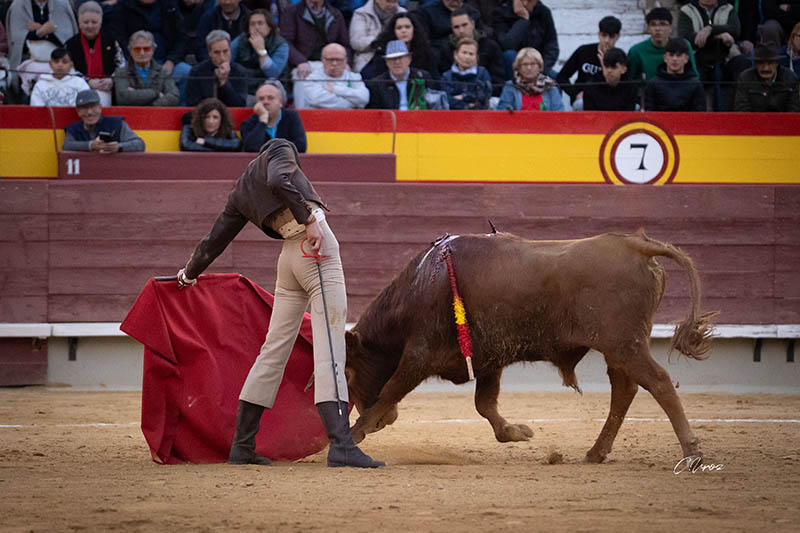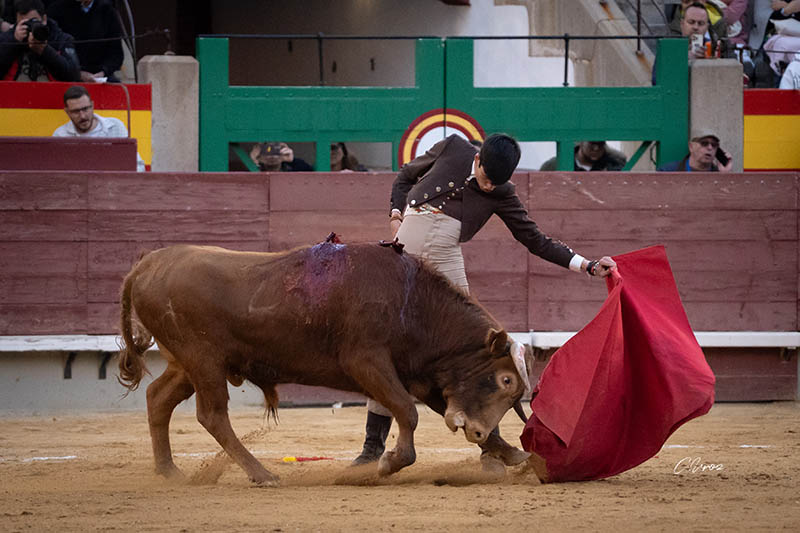 Inició la faena de capote de rodillas, toreo templado con la capa y banderilleó con ajuste y mucha soltura, poniendo al público en pie en dos pares.