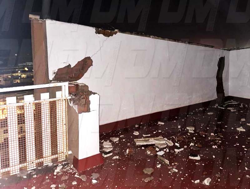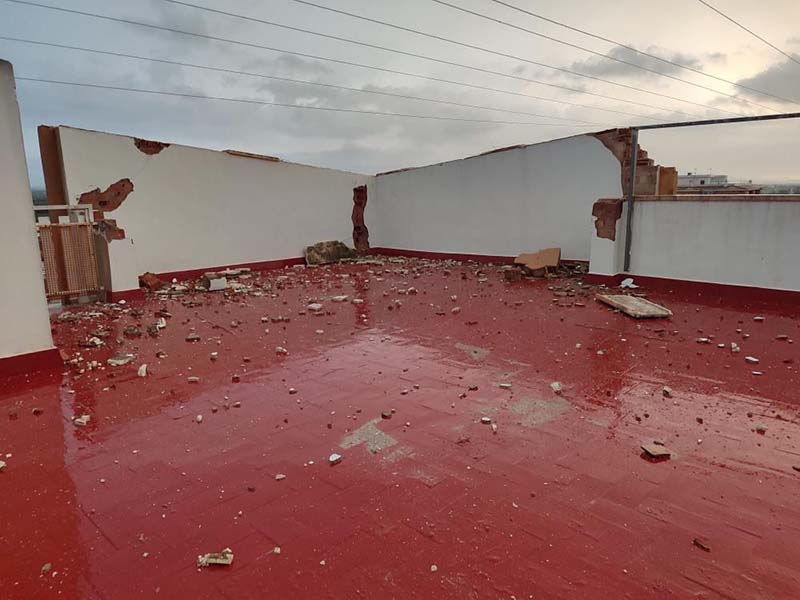 Un veí (seguidor de la nostra pàgiuna) de la comunitat de veïns del bloc afectat ens ha fet arribar aquestes imàtgens de la teulada de la comunitat després de l’impacte.