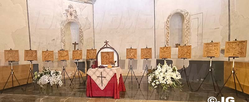 Seguidamente en comitiva desde el Templo Parroquial de San Bartolomé, acompañados por la Banda de Bombos de la Asociación de Exalumnos de la Salle, hasta la Capilla del MUCBE donde se ha llevado a cargo la Inauguración de la XXXIV Exposición de Motivos de Semana Santa