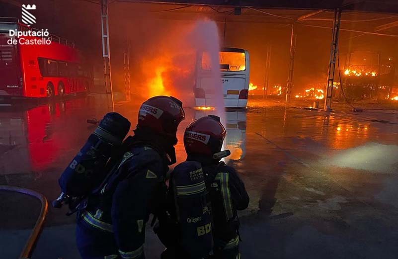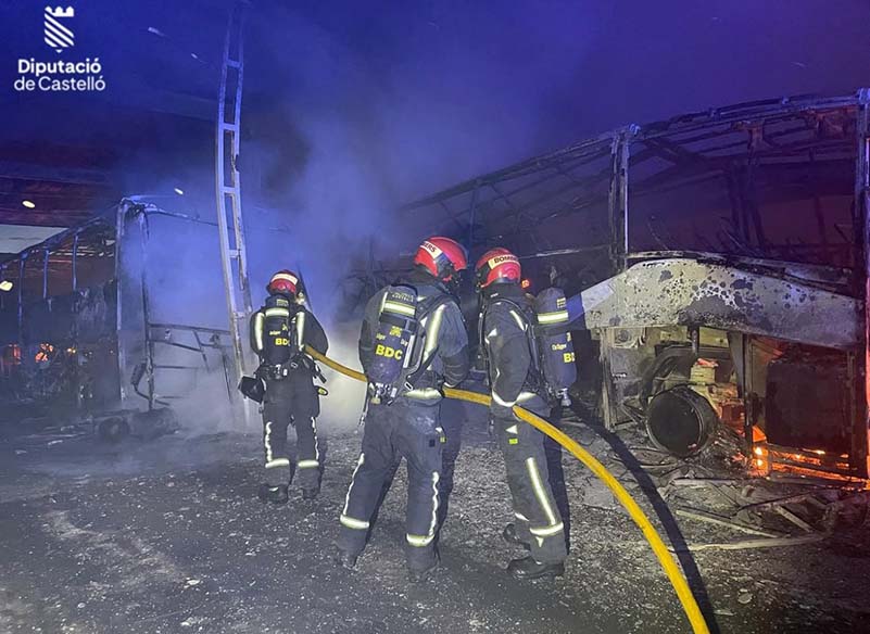 El dissabte 19 d’abril en la Vall d’Uixó es va produir un incendi de grans dimensions en una empresa d’autobusos. Quedant totalment calcinats 5 autobusos i 3 Turismes.