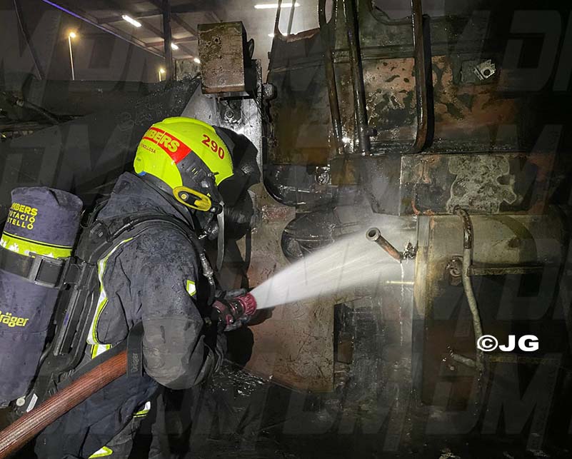 Els bombers han treballat intensivament per sofocar completament el foc de la part posterior de la nau. Una vegada controlat, s’ha iniciat una investigació per tal d’esclarir l’origen de l’incendi.