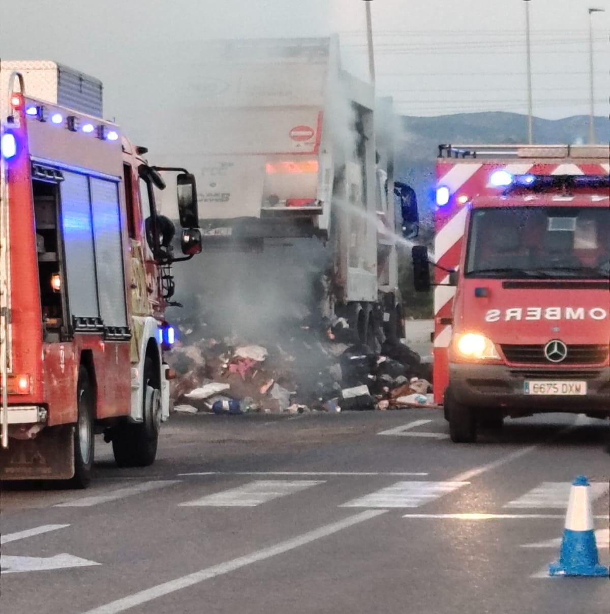 - Esta mañana alrededor de las 5 de la madrugada de hoy martes, se ha incendiado el contenido y carga de un camión de la basura en el Polígono El Collet de Benicarló.