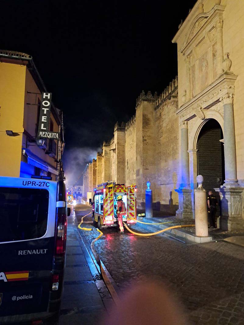 Alrededor de las 21:00 horas del viernes 8 de agosto se alertaba de unas llamas en una de las catedrales que forman la Mezquita de Córdoba, concretamente en la capilla de Almanzor.