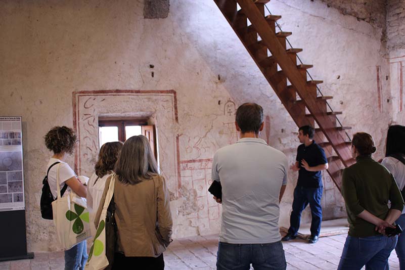 La jornada comenzó en Càlig, con la recepción de los informadores turísticos por parte de Ruth Sanz. El grupo se dio cita en el edificio más emblemático de la población: la Torre de Càlig, una construcción defensiva declarada Bien de Interés Cultural, hecha de piedra, que data del siglo XIII y que alberga en su interior un conjunto de pinturas – desde grafitis medievales a pinturas del siglo XIX y XX – y el mecanismo del reloj que se aprecia desde la fachada. Los prescriptores fueron invitados a una degustación de productos de la zona, entre los que destacamos una cata de diferentes aceites (de las variedades de aceituna Morruda, Arbequina y Canetana), tostadas con crema de algarroba acompañadas de frambuesas, naranja o mermelada de aceite y, para finalizar, un licor de algarroba.