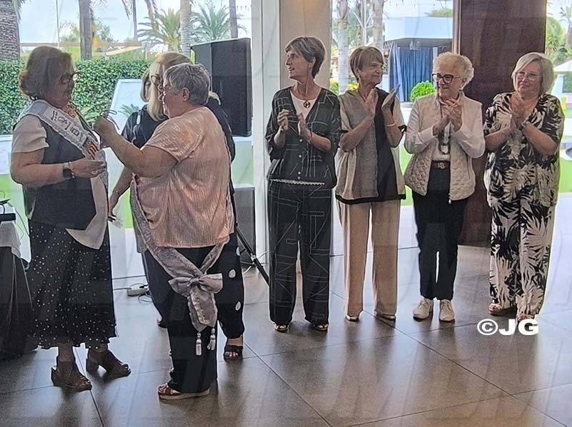 En un conegut Restaurant de Peníscola, el dijous 16 d’octubre, dinar inici del curs i presentació de l’actual Dama Eva Arnau que rep la banda de mans de Felicitas Vives, Dama 2024-2025.