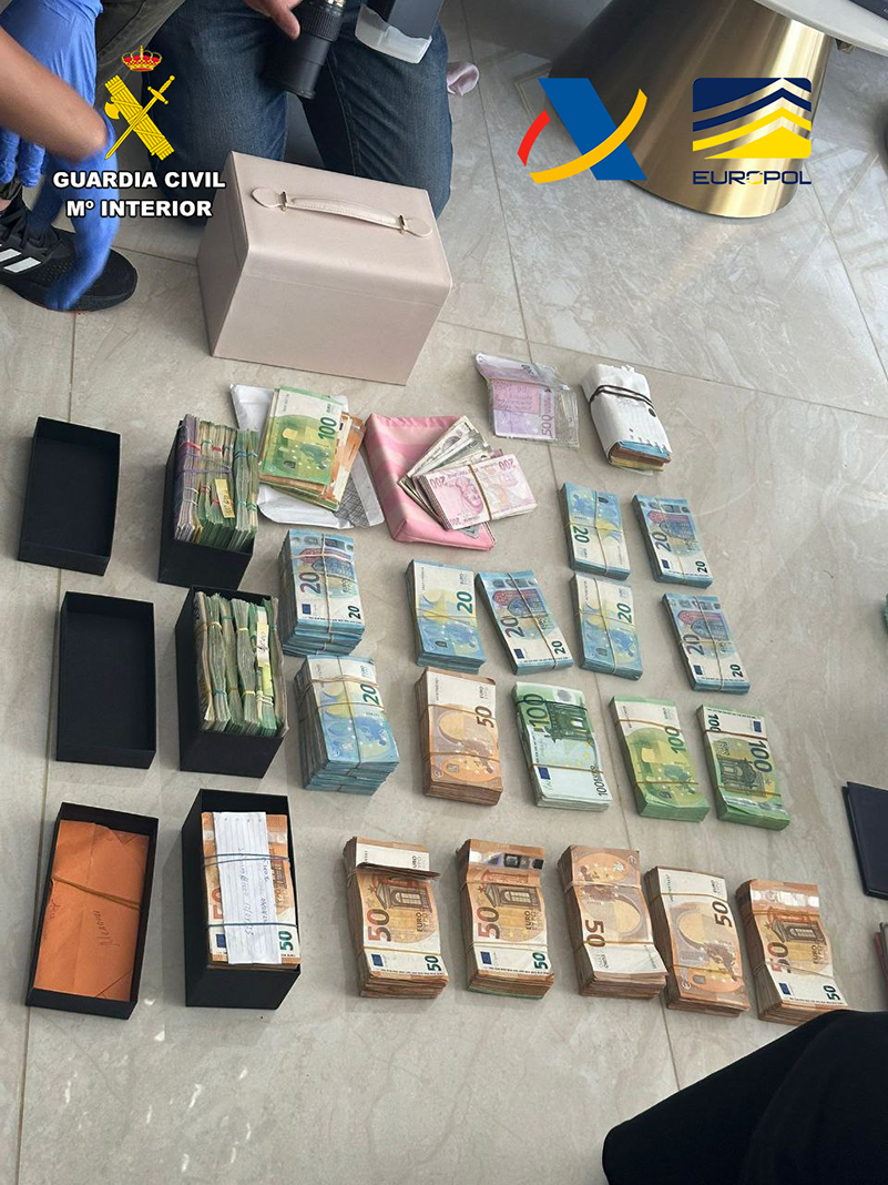 - – Se han intervenido numerosos dispositivos informáticos, 36 vehículos, así como 8,2 millones de euros en efectivo. Se han intervenido o bloqueado un valor superior a los 27 millones de euros en criptomonedas, así como diversos bienes inmuebles y más de 2 millones en cuentas bancarias.