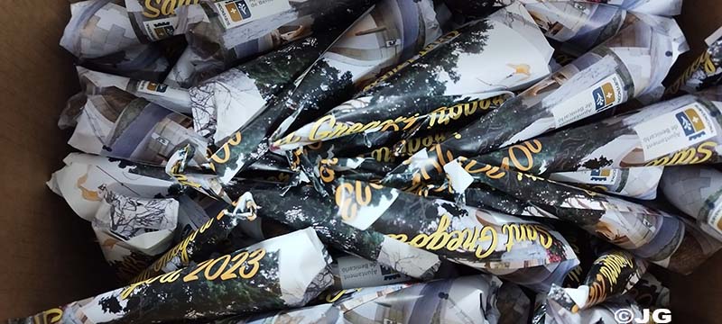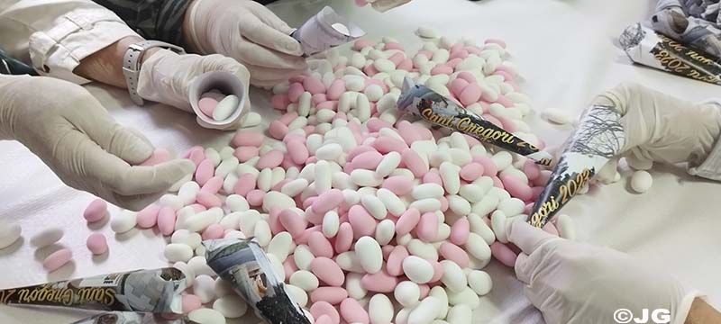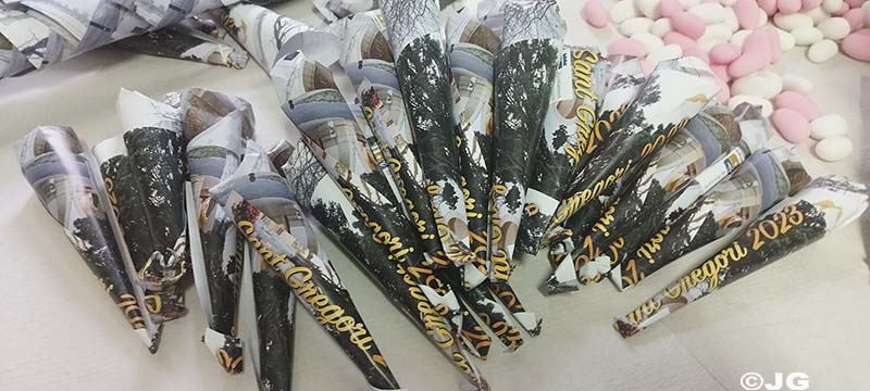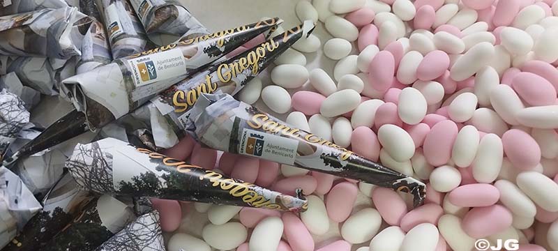 Aquestos confits es repartiràn a mitat cami el dia de Sant Gregori a tots aquells que vajen a la Romeria acompanyant al Sant que serà pujat amb la peana per els Amics de Sant Gregori hasta L’ Ermita.