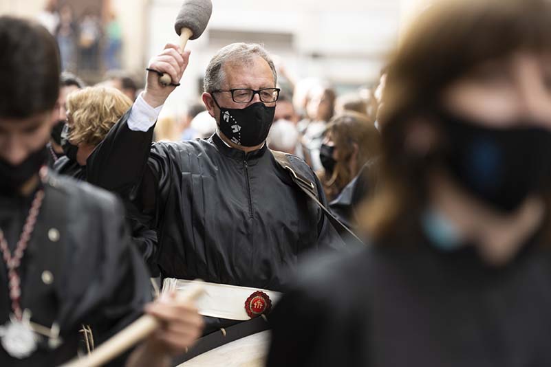 Vestit amb la vesta obscura de la confraria del Santíssim Crist, organitzadora de l’esdeveniment, Martí ha acompanyat des de la plaça d’Espanya els centenars de confrares que amb el toc de tambor i bombo anuncien la mort de Jesucrist. Es tracta de l’acte central de la Setmana Santa alcorina, que per la seua vistositat i tradició va ser reconegut el 2018 com a Patrimoni de la Humanitat per la Unesco.