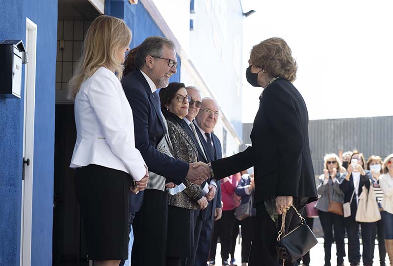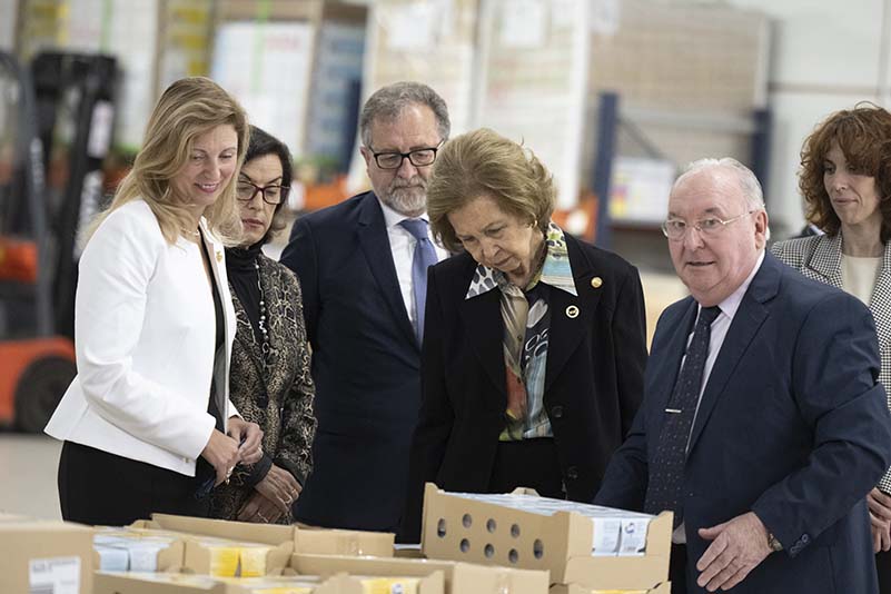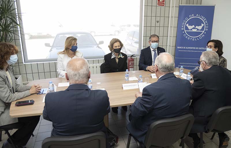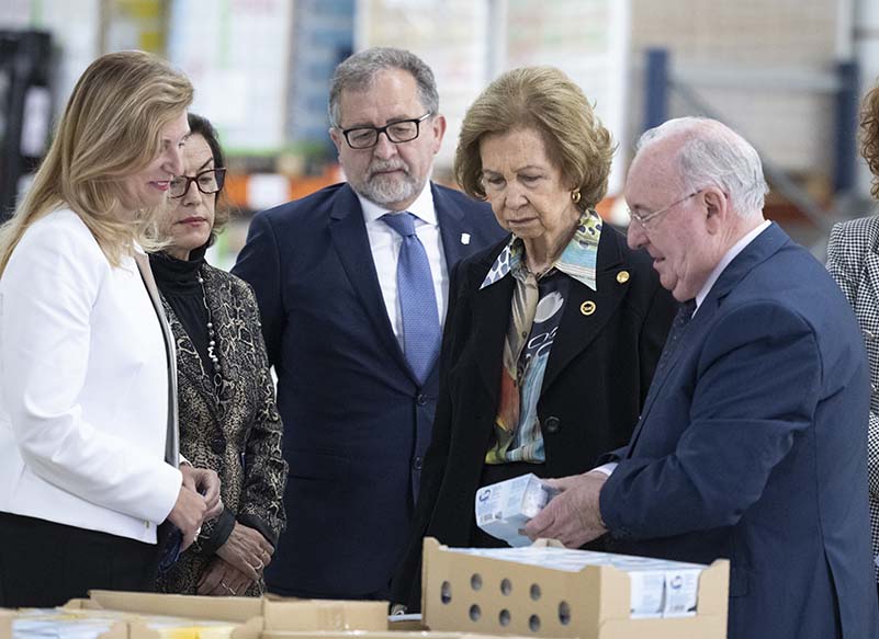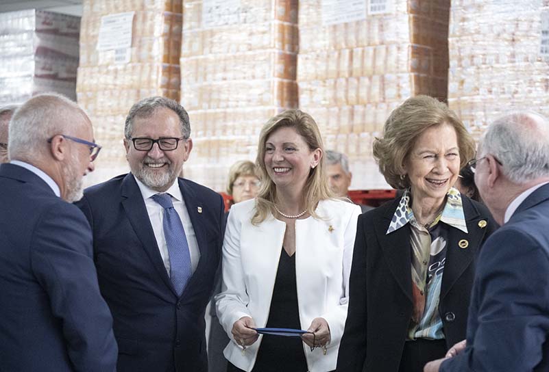 Doña Sofía, conocedora de la gran labor social que desarrolla el Banco de Alimentos de Castellón, ha felicitado por su funcionamiento al presidente, Santiago Miralles.