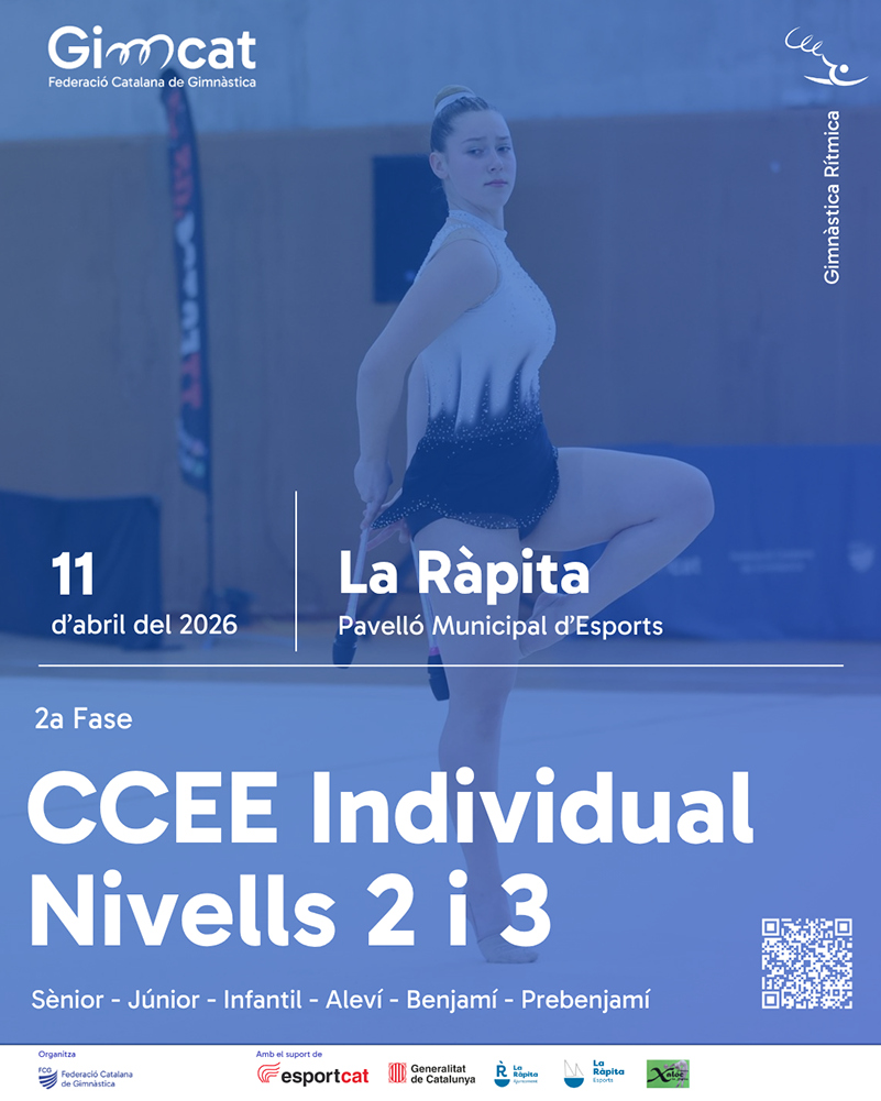 La 2a Fase del CCEE Nivells 2 i 3 en categoria individual i conjunts posarà a prova les habilitats de les esportistes amb diferents aparells com la corda, el cèrcol, la pilota, les maces i la cinta.