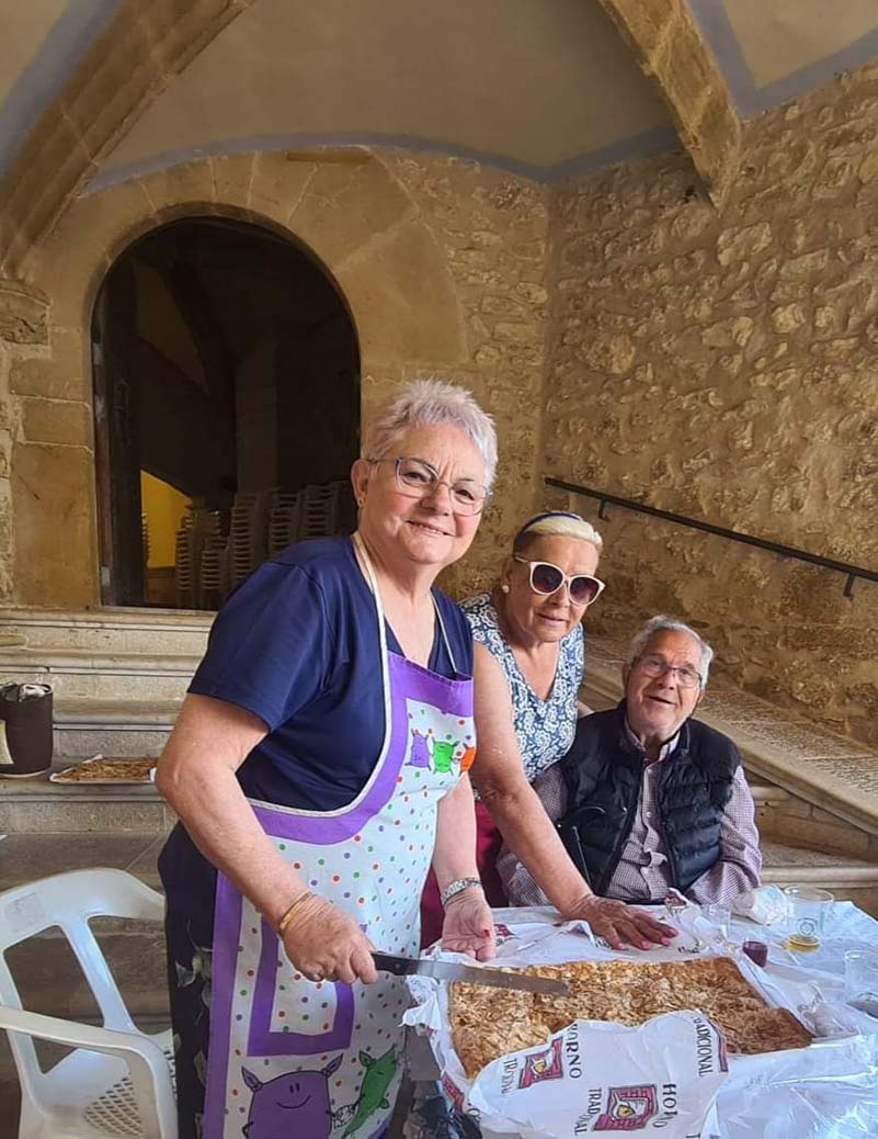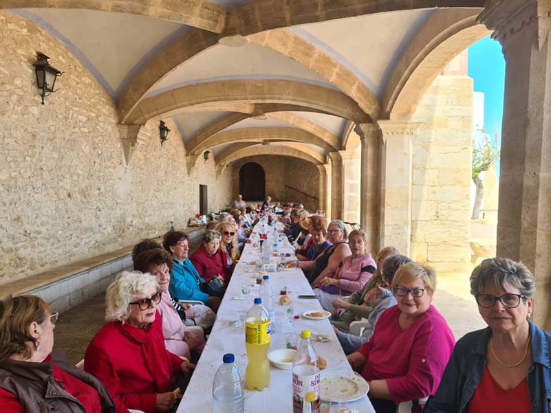 - Mas de setenta socias han subido a la Ermita de San Sebastián, para degustar las paellas, langostinos, cocs salados y dulces. No ha faltado la típica cremaeta.
