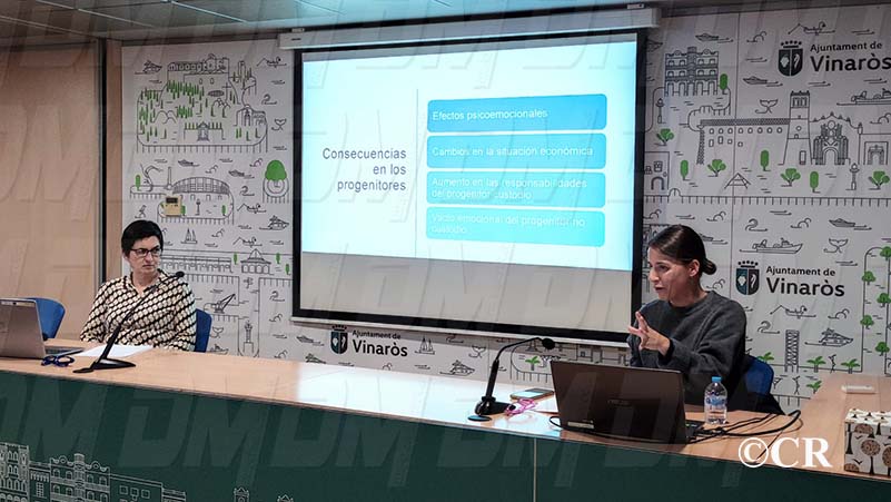 En aquesta ocasió, les ponents de la xerrada van ser la psicòloga Sara Esteller i l’educadora Sílvia A. Ruiz, membres de l’equip d’Atenció Primària Bàsica de Serveis Socials de l’Ajuntament de Vinaròs, que van parlar sobre els problemes que pot causar una separació tant des del punt de vista dels pares com des del punt de vista dels fills.
