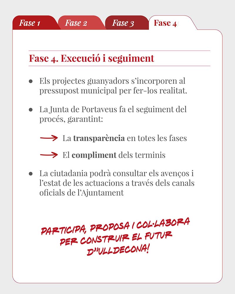 Des del consistori s’anima tota la ciutadania a participar i implicar-se en aquest procés, que reforça la transparència, la participació democràtica i la corresponsabilitat en la gestió del futur d’Ulldecona.