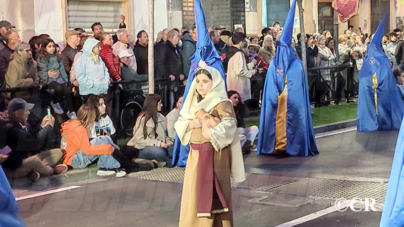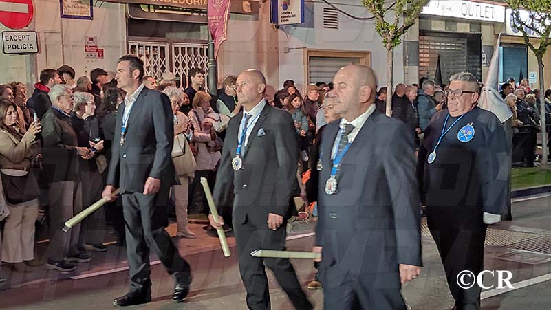 En aquesta primera processó, les confraries que han eixit són “La Oración Del Huerto”, “Paso de San Pedro”, “Hermandad Estudiantil de los Azotes En La Columna”, “Ecce Homo”, “Hermandad de Jesús Cautivo”, “Venerable Cofradía de la Santísima Faz”, “Jesús Nazareno y Santo Sepulcro”, “Portante Virgen de los Dolores”, “Cristo de la Paz”, “Crist dels Mariners”, “El Descendimiento”, la “Virgen de las Angustias”, el “Cristo de la Família Juan” i “el Santíssim Sagrament”.