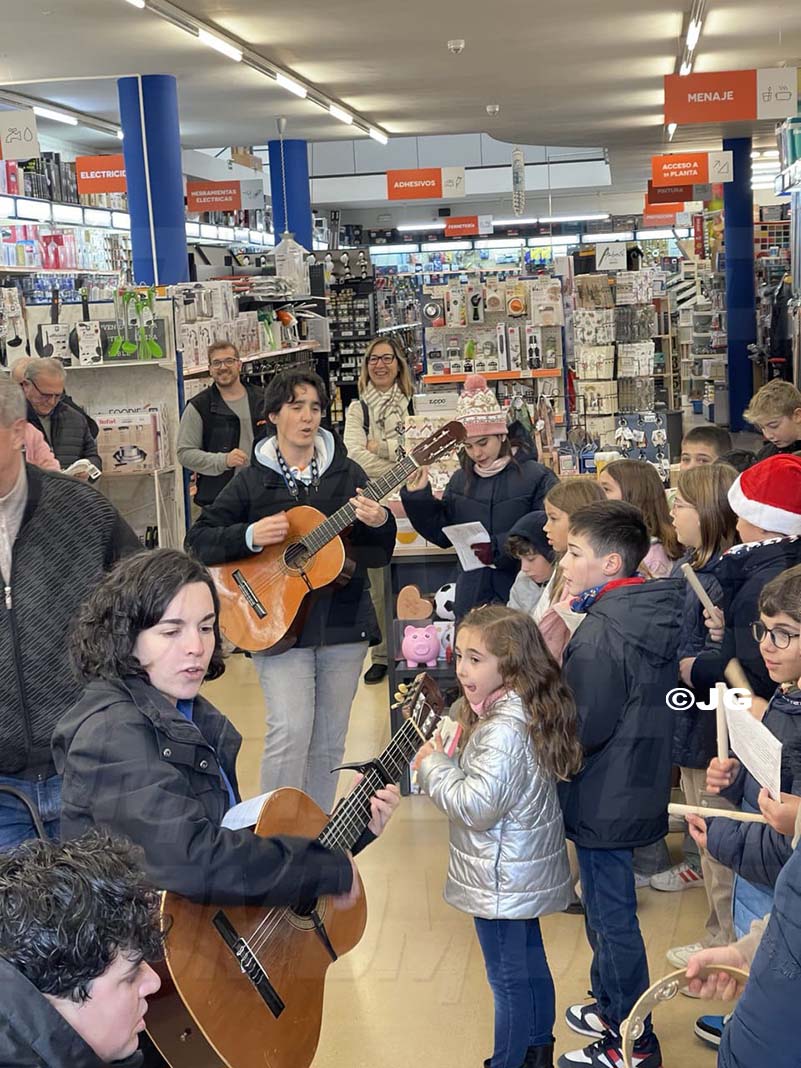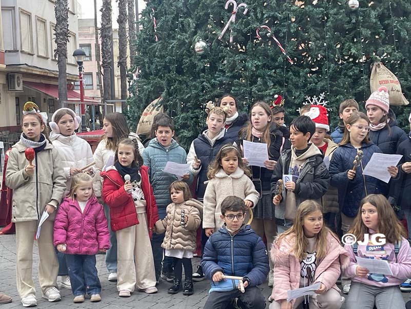 La coral improvisada visitó el mercado municipal, la plaza de la Iglesia de San Bartolomé y varios establecimientos comerciales, deseando felicidad a todos en estas fiestas navideñas.