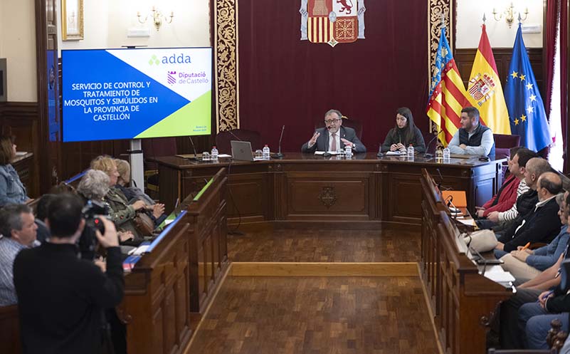 El president de la Diputació de Castelló, José Martí, i la diputada de Medi Natural, María Jiménez, han celebrat hui una reunió de coordinació amb alcaldesses, alcaldes, regidores i regidores de la província sobre el Pla Provincial contra els Mosquits. Es tracta de la primera trobada a nivell polític de l’any, que dona continuïtat a la celebrada fa uns dies amb tècnics municipals, en la qual s’han explicat els detalls principals del Pla Provincial contra els Mosquits, que suposa una inversió de 830.000 euros per a la Diputació. Durant la sessió, Martí, Jiménez i els responsables tècnics del Pla també han fet referència a l’important que resulta la col·laboració dels ajuntaments i de la pròpia ciutadania a fi d’aconseguir els millors resultats possibles. En aquest sentit, s’ha incidit en la necessitat d’esbrossar àrees en les quals s’acumula la vegetació per part dels ajuntaments, així com d’evitar la permanència d’aigua estancada en terrenys, tests, recipients o piscines sense tractar de terrenys privats. Sobre aquest tema, el president recorda que “els mosquits volen” i que “l’existència de parcel·les descurades pot restar efectivitat al Pla”.