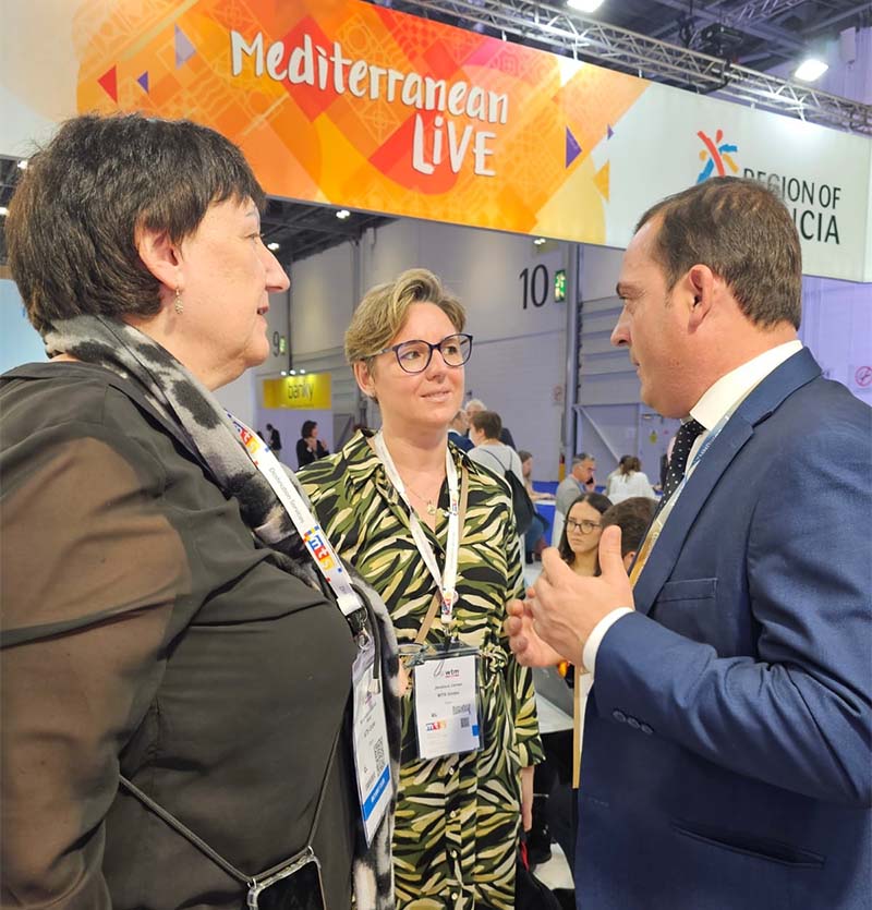 Així doncs, durant la primera jornada de la fira, el diputat de Turisme ha aprofitat per a reunir-se amb turoperadors, analitzar la situació del sector turístic a la província i afrontar nous reptes al costat de Destinia i MTS, les dues agències amb les quals ha mantingut un primer contacte. “Ha sigut un matí molt productiu en la qual tant amb Destinia com amb MTS hem traçat objectius de cara a la pròxima campanya 2024 per a aconseguir tindre un creixement quant a la recepció de turistes britànics a la nostra terra”, ha explicat Andrés Martínez, qui ha tingut l’oportunitat de coincidir amb el president de la Generalitat Valenciana, Carlos Mazón, i la consellera de Turisme, Nuria Montes.