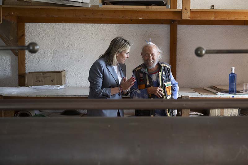 La presidenta de la institució provincial, Marta Barrachina, visita a l’artista a la seua casa i taller en Mas de Flors per a anunciar-li la decisió del Govern Provincial de reconéixer-li amb el màxim guardó que s’entregarà en el Dia de la Província 2026