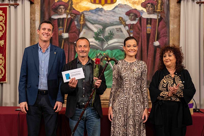 Així, acompanyat per la reina de les Festes de la Magdalena, Clara Sanz, i Mónica Galán, en representació de la Federació de Colles de Castelló, el diputat provincial ha fet lliurament del guardó a Vicent Gascó Villanueva i ha assenyalat la transcendència d’este premi dotat de 3.000 euros. A més, l’escriptor ha rebut un bastó commemoratiu i una rosa.