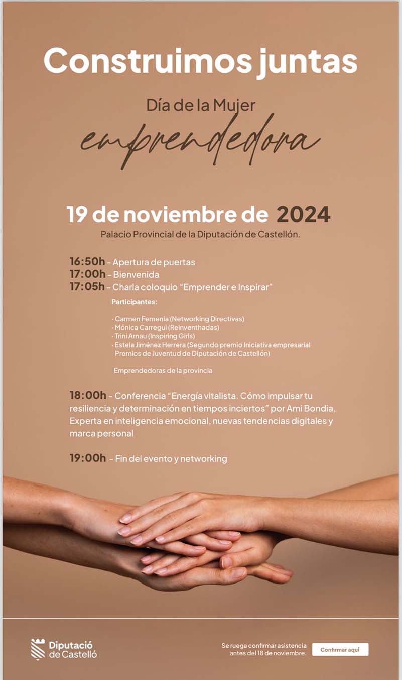 La Diputació Provincial de Castelló promou el talent i esperit emprenedor en l’acte commemoratiu del Dia Internacional de la Dona Emprenedora que comptarà amb la participació de Ami Bondia i de dones líders de la província de Castelló.