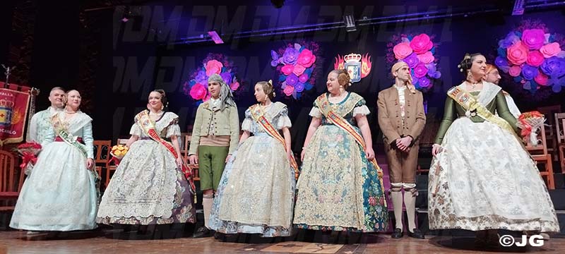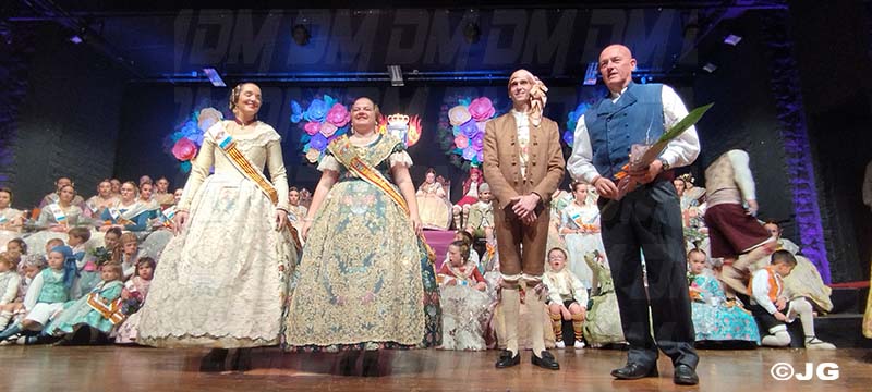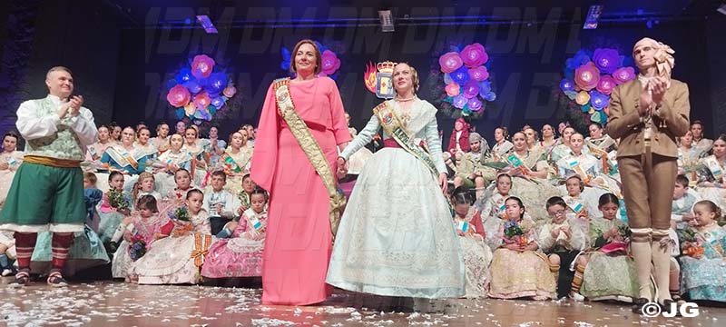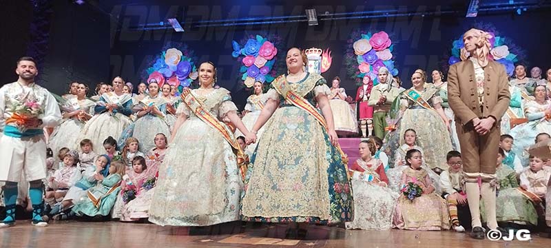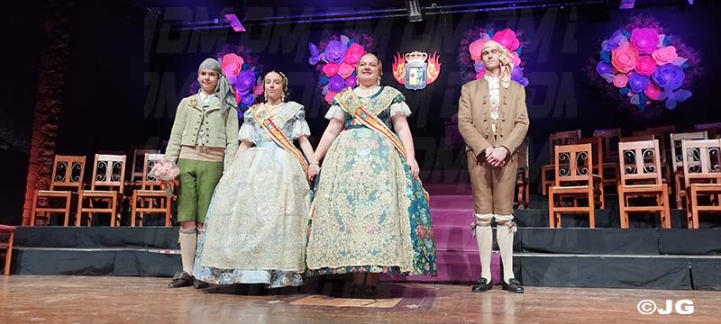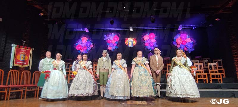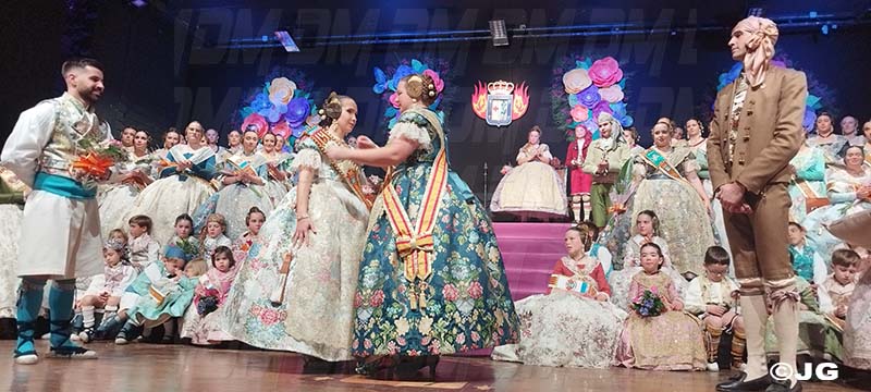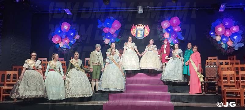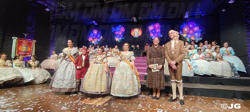 Pleitesia de les Comissions Falleres de la Ciutat, Reina de les Festes Patronals Neleta Boo, acompanyada de la Regidora María Teresa Pellicer, tancant les pleitesias les Falleres Majors de la Ciutat Gema Rillo, Alba Crespo i representació de les Corts d’Honor de 2024.
