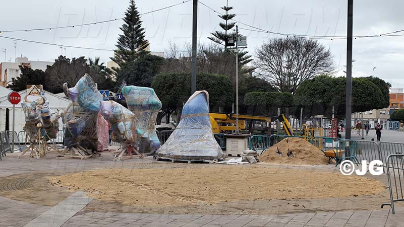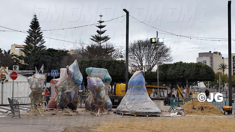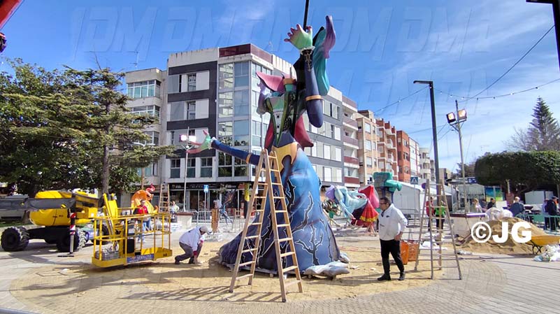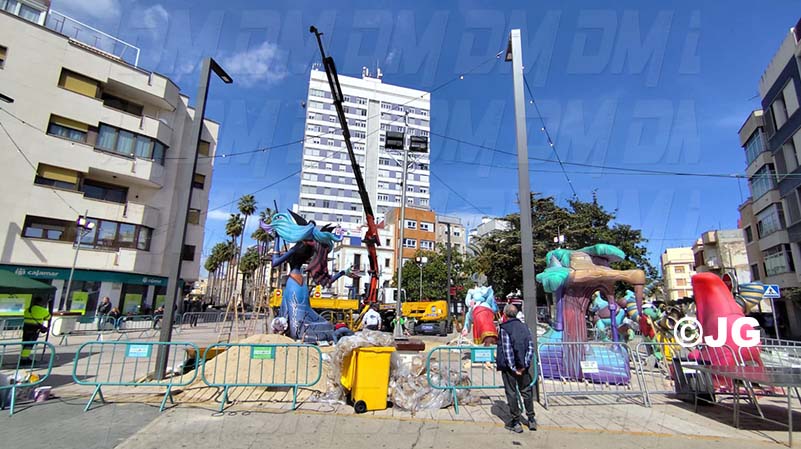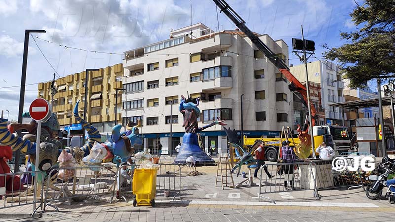 - La comissió d’aquesta falla juntament amb l’artista faller, han iniciat des de primera hora el muntatge del monument faller 2025
