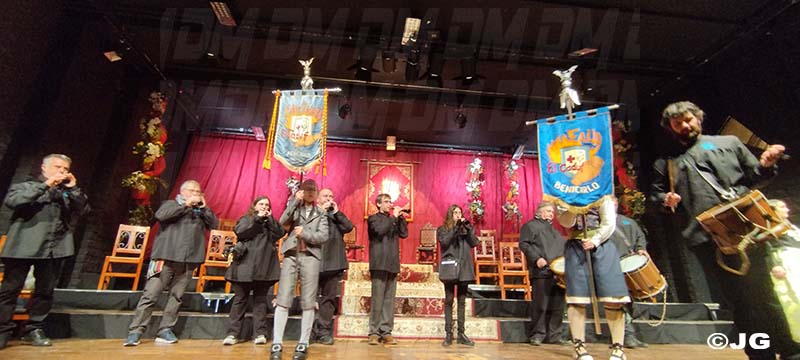 Pleitesía de la Penya L’Arjup i Sitral, Colla Dolçainers, Gaita número 1 Brancal de Castelló, Penya Calauritana, Comissions Falleres de la Ciutat i Falleres Majors Gema i Alba i Corts d’Honor de la ciutat.