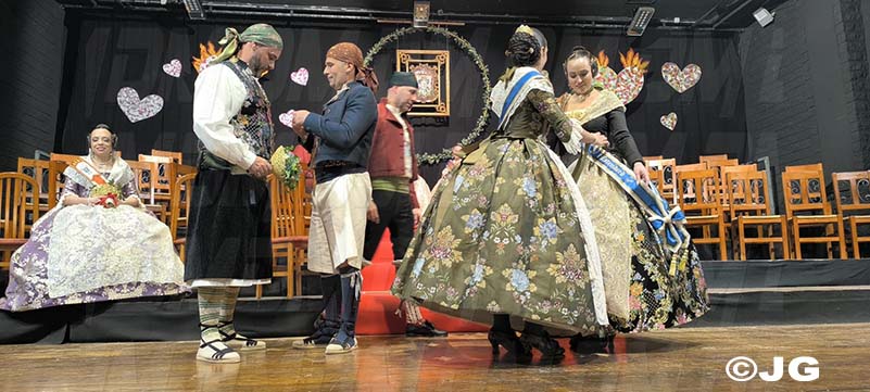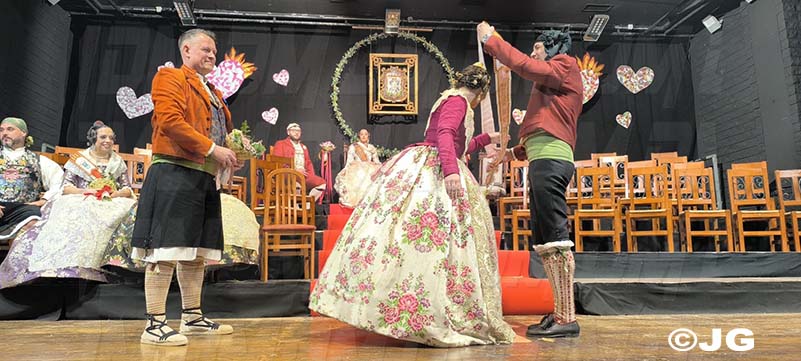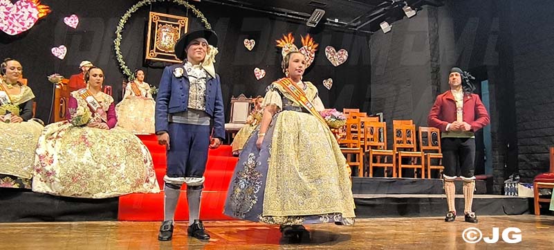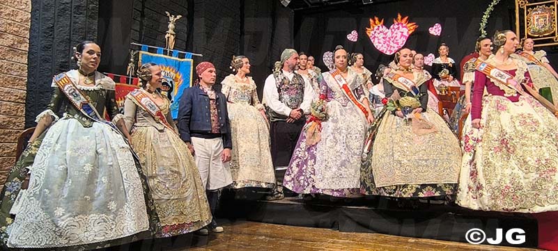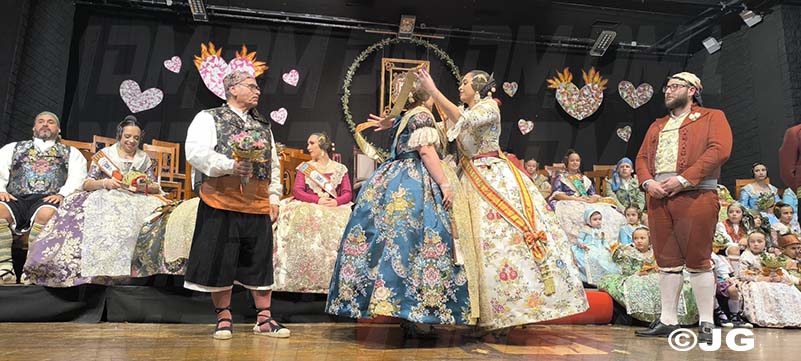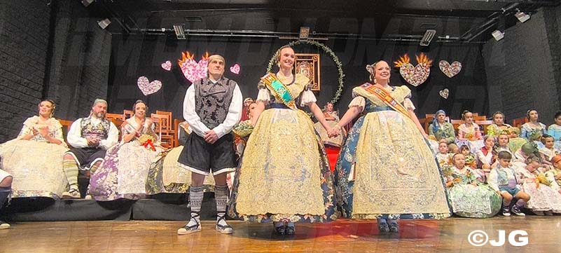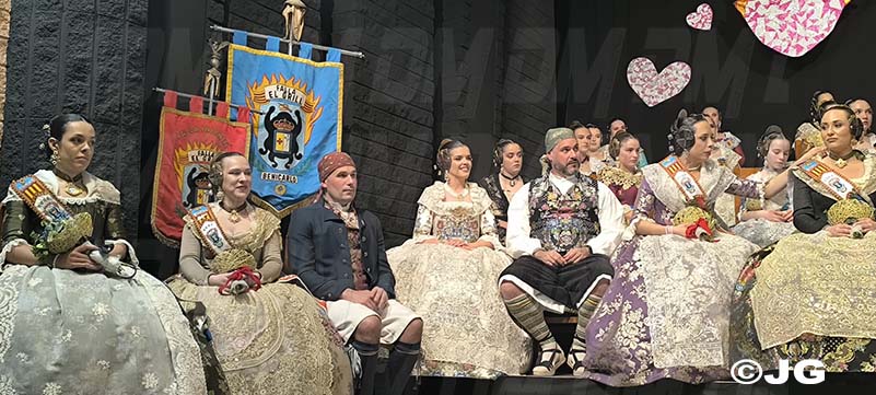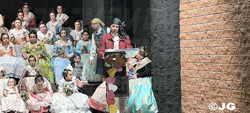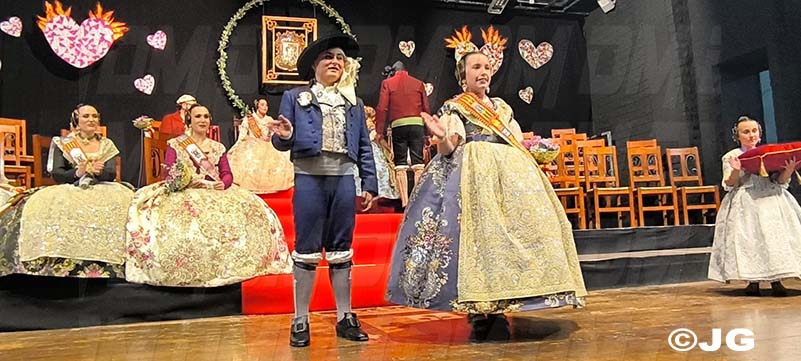 Pleitesies de la Falla Nord Doctor Zamenhoff. Gaita núm 6, Farola Ravalet. Penya Alakran. Comissions Falleres de la Ciutat. Regidora de Falles i representants de la Cort d’Honor de Junta Local Fallera de la ciutat, amb els seus màxims representants: Yune i Noa, acompanyades per la Presidenta i vicepresidenta.