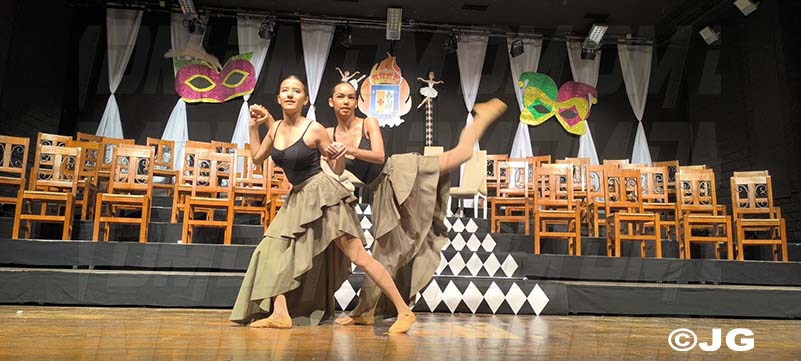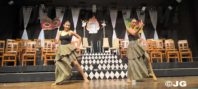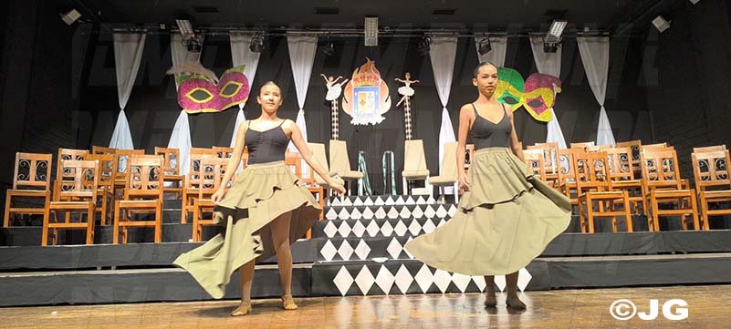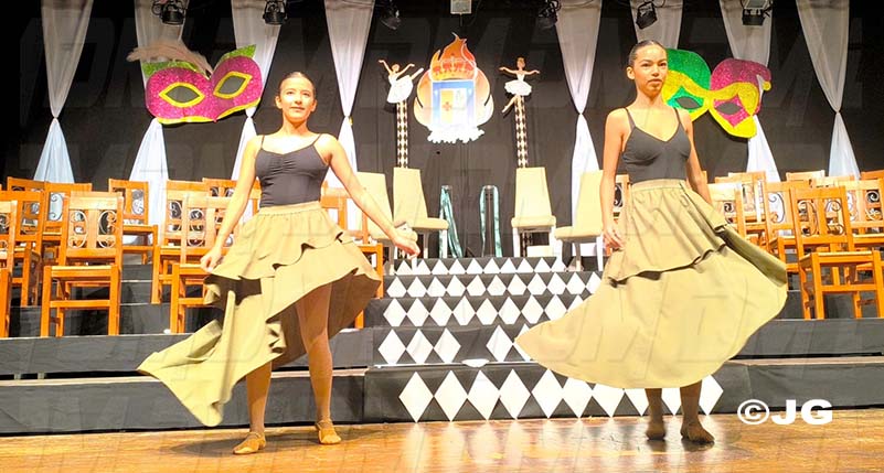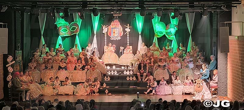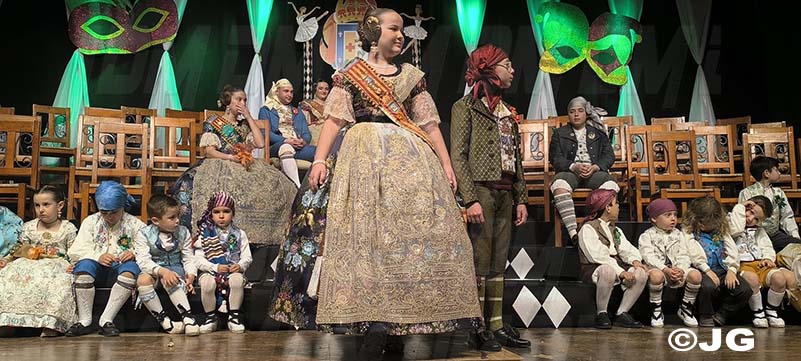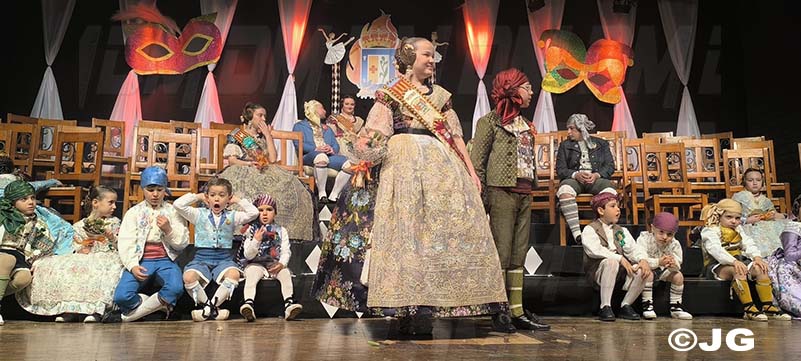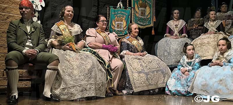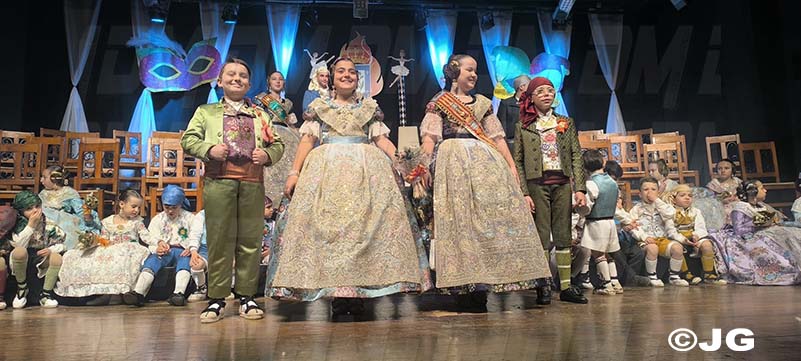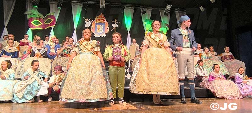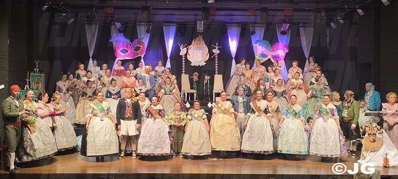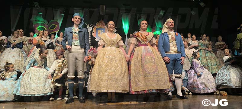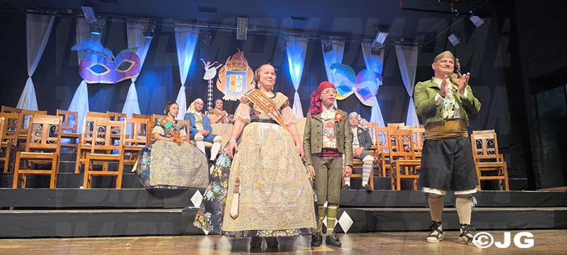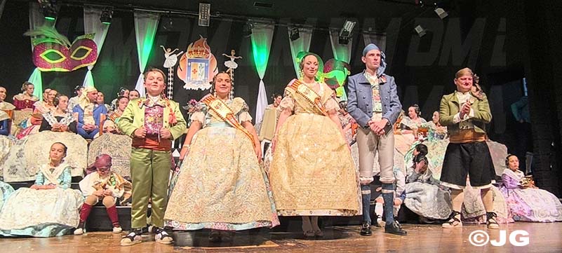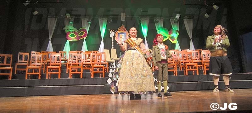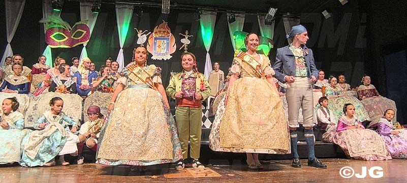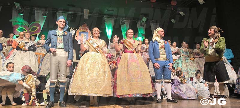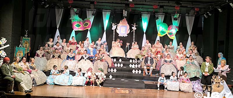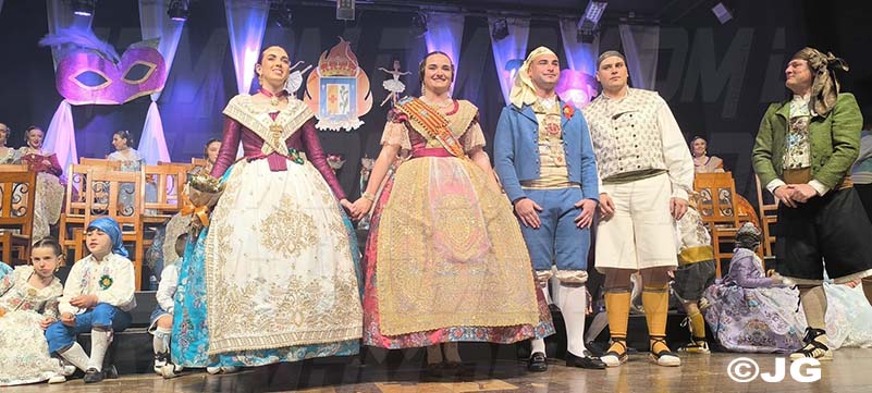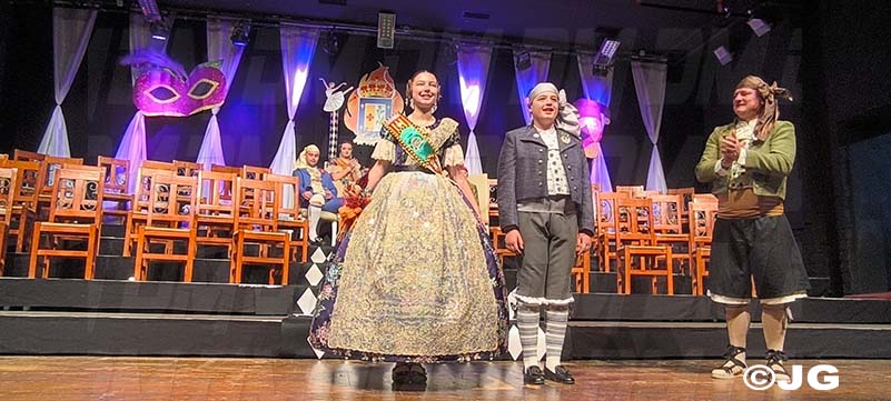L’escenari, decorat amb arts escèniques, va ser el marc perfecte per a la presentació dels càrrecs d’honor, que va estar a càrrec de Gema Llorach, Martina Orero, Mara Castell i Raúl García.