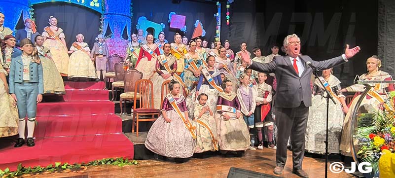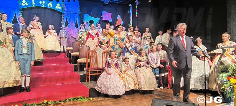 L’acte va començar i amb grans canvis a causa de la pluja, es va suspendre el passeig. Es va comptar amb la presència de nombroses personalitats i representants de les comissions falleres de la ciutat que tots van arribar a la porta de l’Auditori Pedro Mercader.