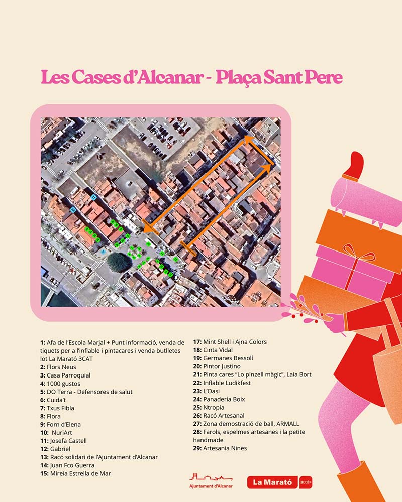 A Alcanar, la programació de la Fira continuarà amb el taller skincare de Tàni by Flora estètica, amb un repartiment de vermutet a càrrec de Bar Moreno i amb l’espectacle itinerant Kukhristmas, amb inici a l’Onada. A Les Cases, hi haurà demostració de balls a càrrec de l’Associació ARMALL, una cursa solidària organitzada per l’AFA de l’Escola l’Escola Marjal i el concert familiar “Can Cantem; Gresca Nadalenca”, amb xocolatada gentilesa de l’AFA.