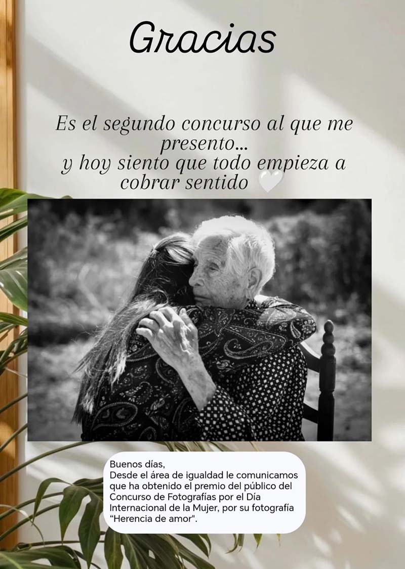 Segons ha comunicat l’àrea d’Igualtat, la seua imatge titulada “Herencia de amor” ha sigut la més votada pel públic, destacant pel seu missatge i sensibilitat artística.
