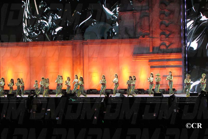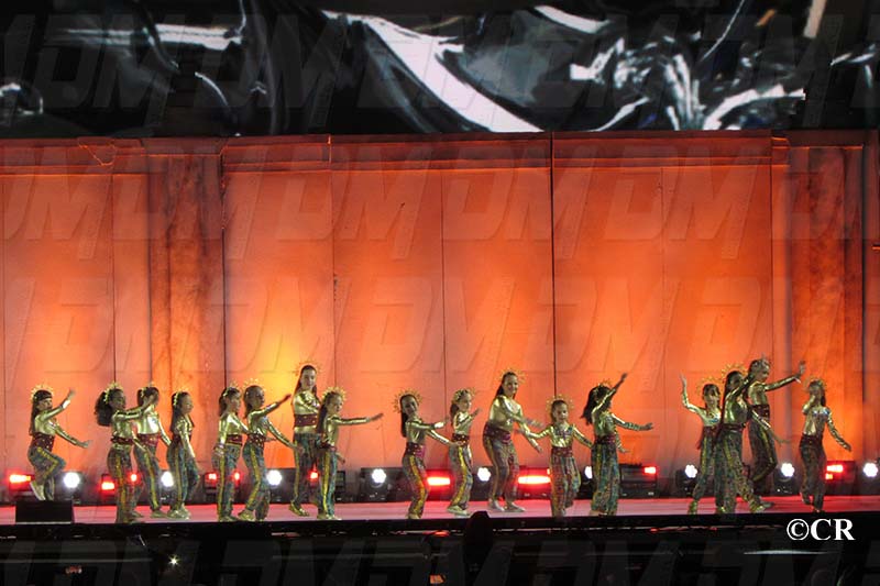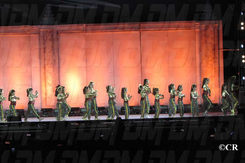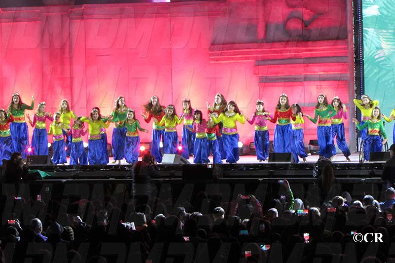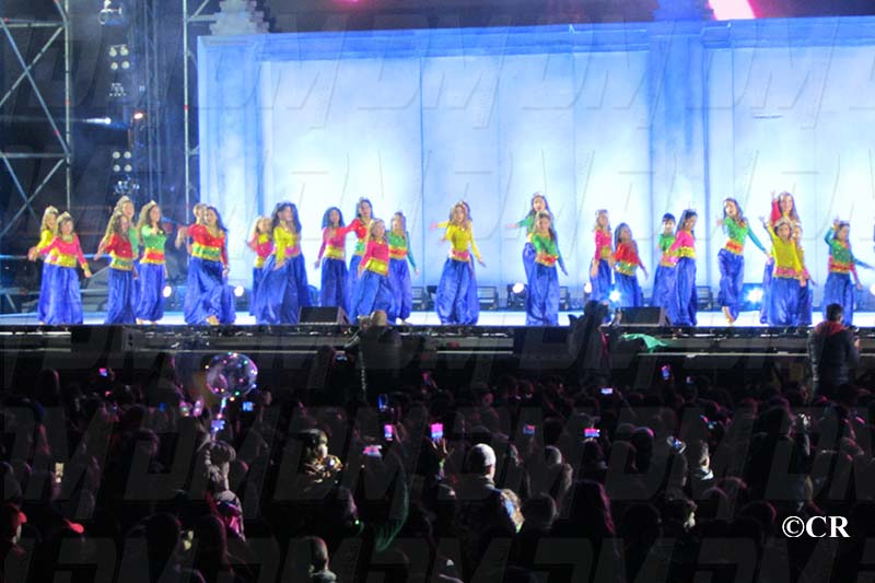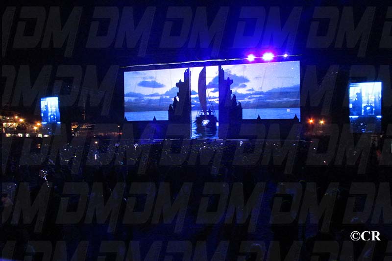La gala, que s’havia d’haver realitzat ahir per la vesprada però es va suspendre per les previsions de fort vent, s’ha enfrontat aquesta vesprada a un nou element de l’oratge: la pluja intermitent i forta en alguns moments, que ha obligat al públic a treure els paraigües per poder resguardar-se.