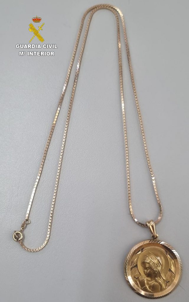 Durante la realización de varias pesquisas, los guardias civiles lograron localizar la cadena de oro en un establecimiento dedicado a la compra venta, por lo que pudo ser recuperada y devuelta a su legítima propietaria.