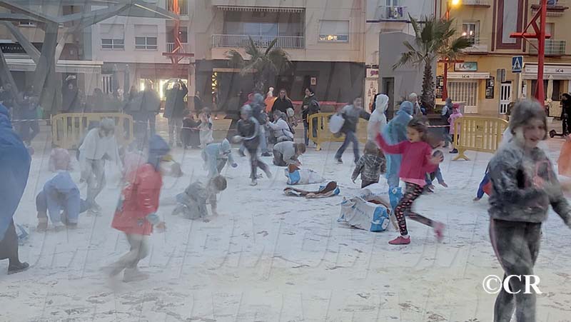 La Gran Batalla de la Farina tenyeix de blanc el Passeig de Colom de Vinaròs