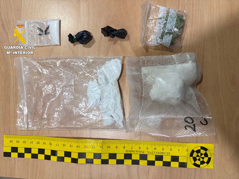 En total, al detenido se le intervinieron 34,82 gramos de cocaína, 0,91 gramos de ketamina y 1,8 gramos de marihuana, así como 1.870 euros en efectivo, lo que reforzó los indicios de un posible delito de tráfico de drogas.