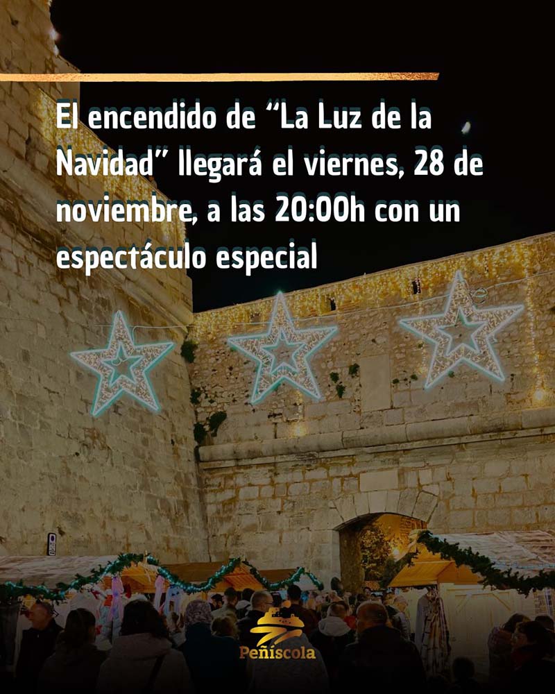 La màgia del Nadal torna a Peníscola a partir del 28 de novembre, quan la ciutat donarà la benvinguda oficial a les festes amb l’encesa de llums i un espectacle especial que marcarà l’inici d’un mes ple d’activitats, mercats i propostes per a tots els públics.
