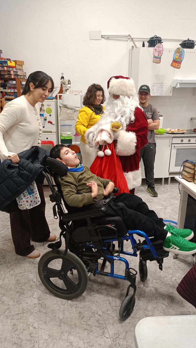 Usuarios y equipo profesional compartieron un momento único, marcado por la participación activa de todas las personas que forman parte de la entidad. Risas, saludos llenos de inocencia y miradas llenas de ilusión acompañaron la llegada de Papá Noel, que repartió cariño, buenos deseos, pequeños detalles y chuches, creando un ambiente cálido y festivo.