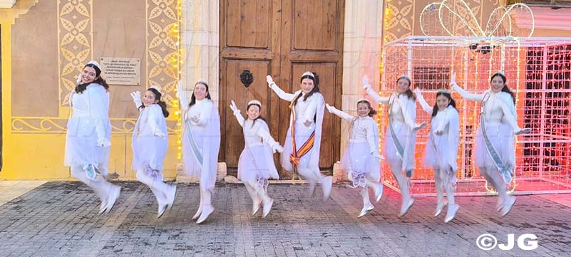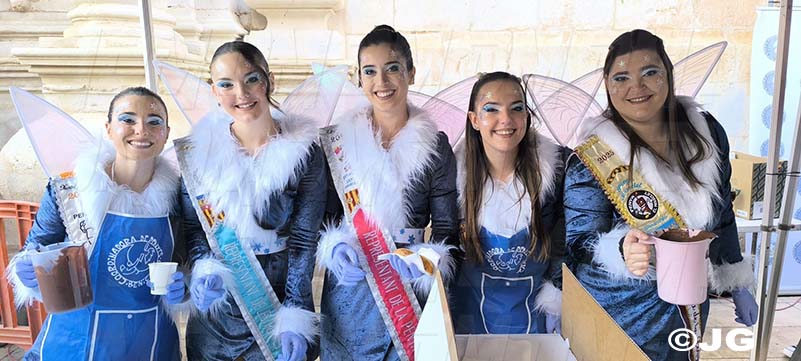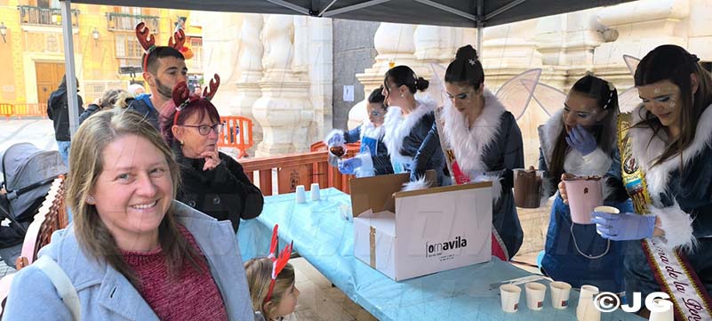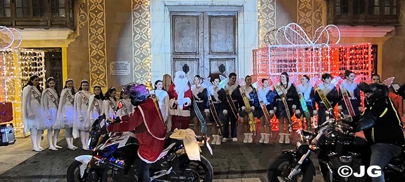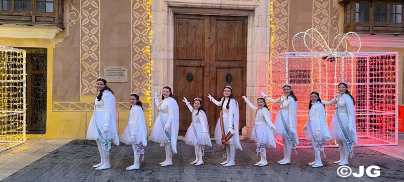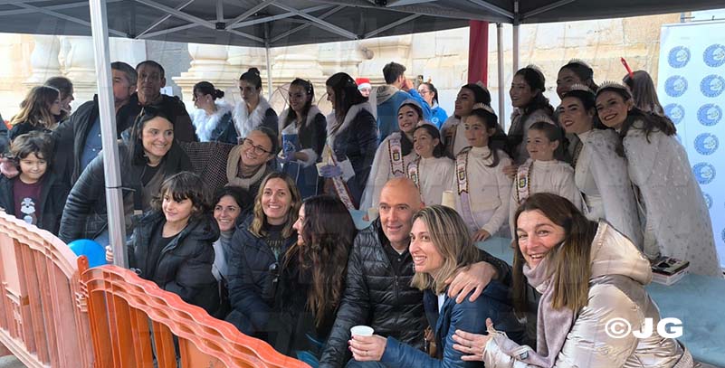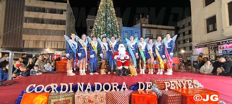 Posteriorment, el Pare Noel va arribar a l’Ajuntament, on va ser rebut amb honors per la Reina de les Festes, Dames de Festes i Penyes de la ciutat, que li van donar la benvinguda a la ciutat.