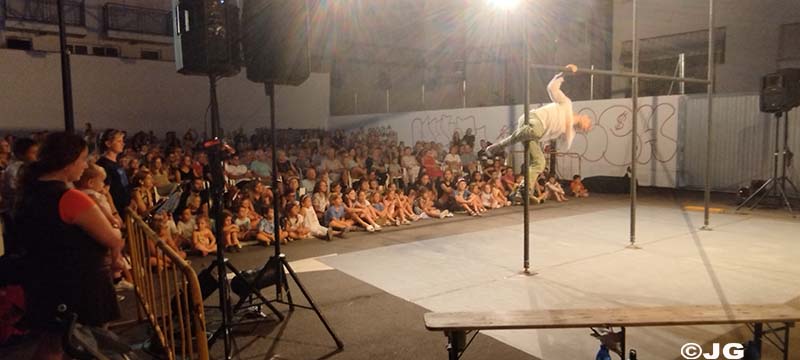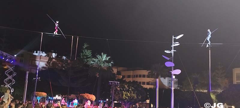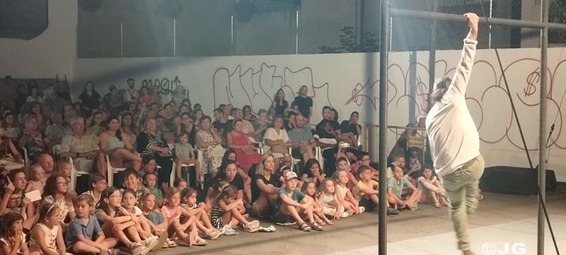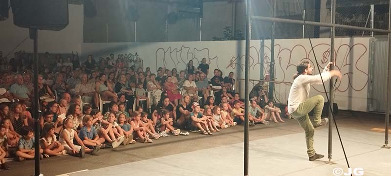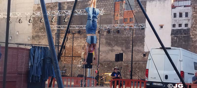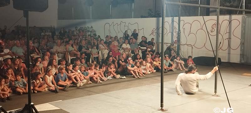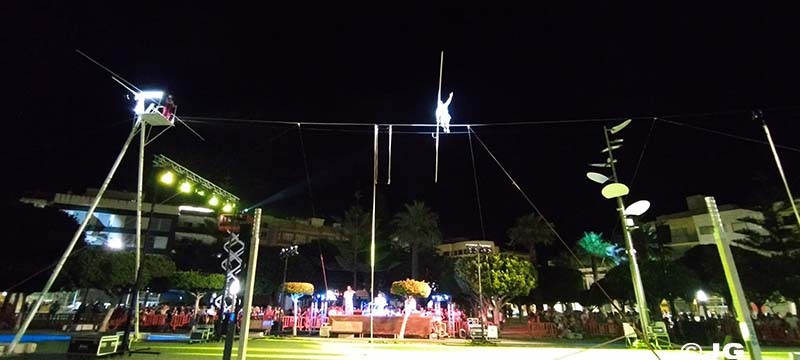 Un pont entre els núvols, un fil tendit als somnis, un pas a la il.lusió… 40 metres de cable a 10 metres d’ altura, un trapezi i un musteler xinès penjat del cable, dos fumambulistes, dos acròbates i 3 músics a mig cami cap al cel. Un espectacle en altura, mustidisciplimària, poètic i visual per a tots els públics. Una obra per a sentir i donar curs a la imaginació.