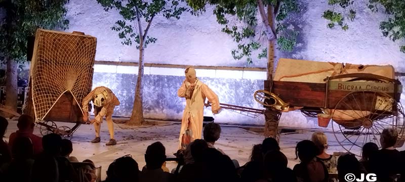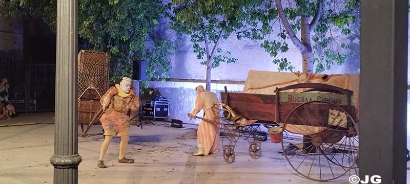 Bucráa Circus fa un homenatje a un dels oficis més bonics i generosos del món: l’ ofici de ser pallasso. Sentir per a crear un diàleg amb l’ espectacular des de les emocions, on sobren les paraules.