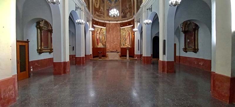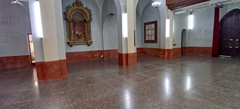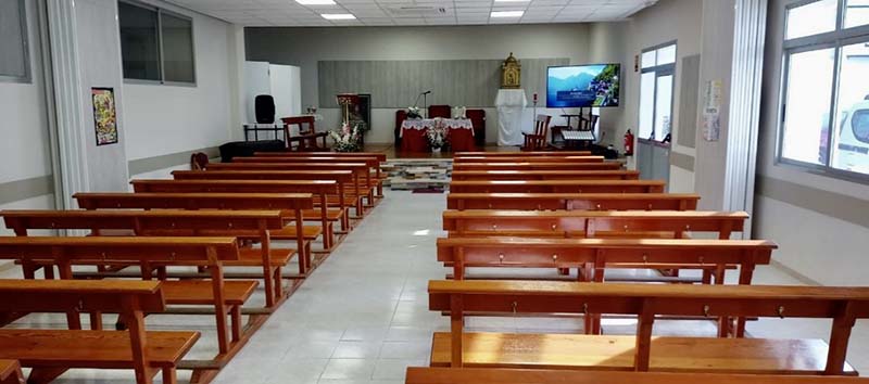 La vesprada del diumenge 21 de maig, un grapat de voluntaris, van traslladar tot el mobiliari de la capella al centre parroquial que s’ha habilitat per a dur a terme les celebracions durant els 4 mesos que duraran les obres. L’horari de misses serà el mateix. A les 20:00 h cada dia i el diumenge a les 12:00 i a les 20:00.