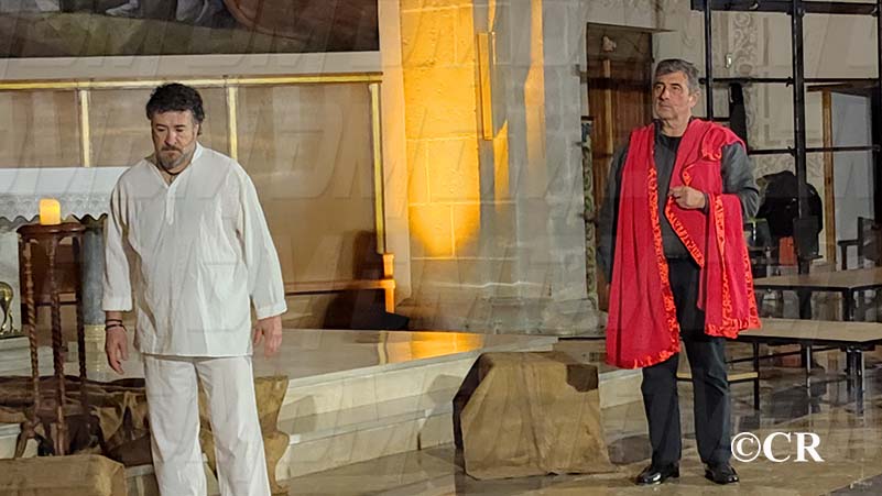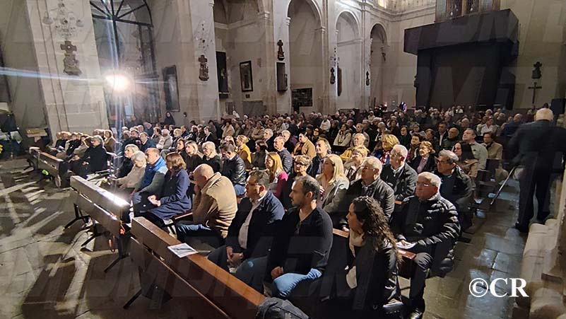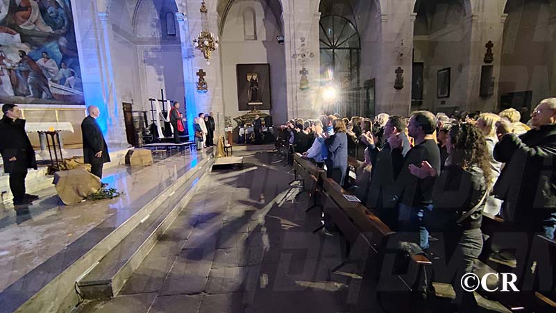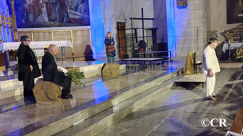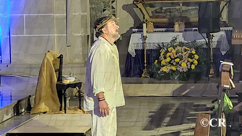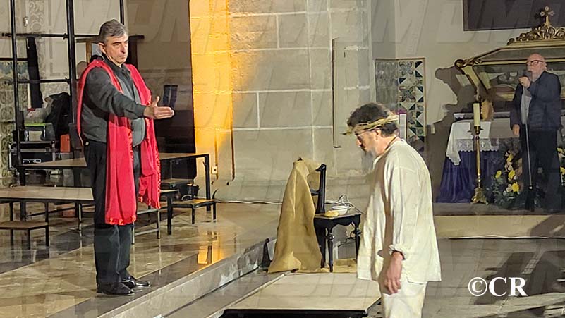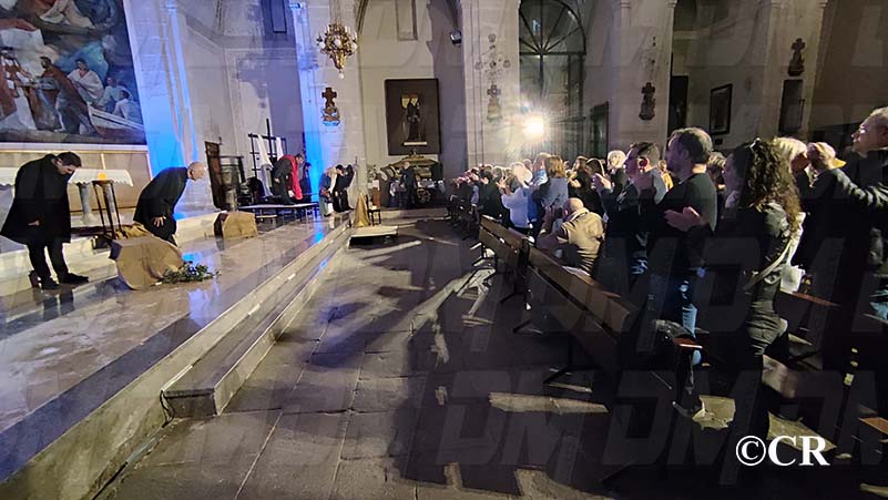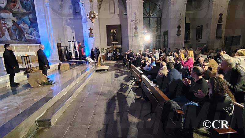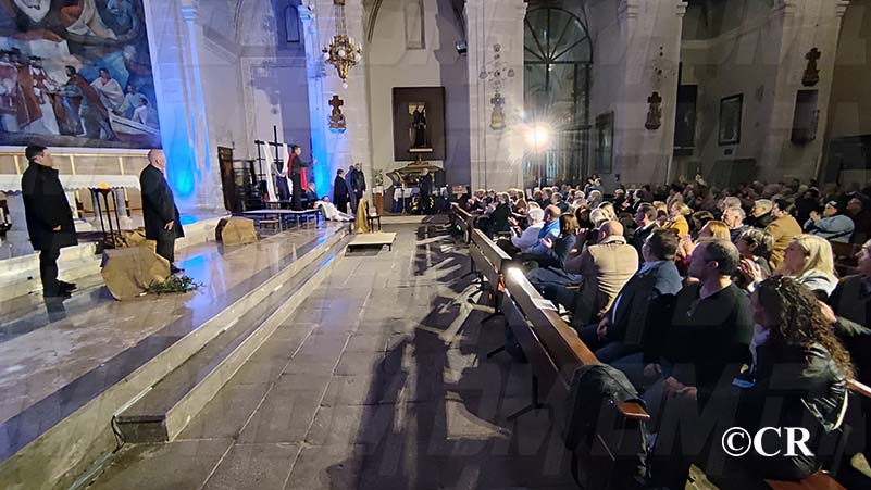 L’Església Arxiprestal de Vinaròs ha acollit aquesta vesprada la representació de la Passió de Castellvell del Camp, un espectacle que “vol fugir de l’espectacularitat per centrar-se en la força del text, la proximitat dels intèrprets i l’emoció compartida, per tal de construir un relat ple de tensió dramàtica”.