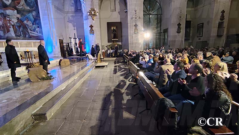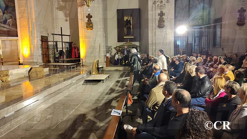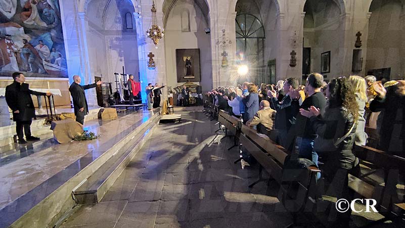 L’església vinarossenca s’ha quedat petita per poder gaudir d’aquesta mostra, en una representació que ha intercal·lat fragments de tres grans passions de casa nostra: la versió de Jaume Vida i Alcover de la Passió d’Ulldecona, la versió de Joan Povill i Adserà de la Passió d’Olesa de Montserrat i la versió de Ramon Torruella i Satorra de la Passió d’Esparraguera.