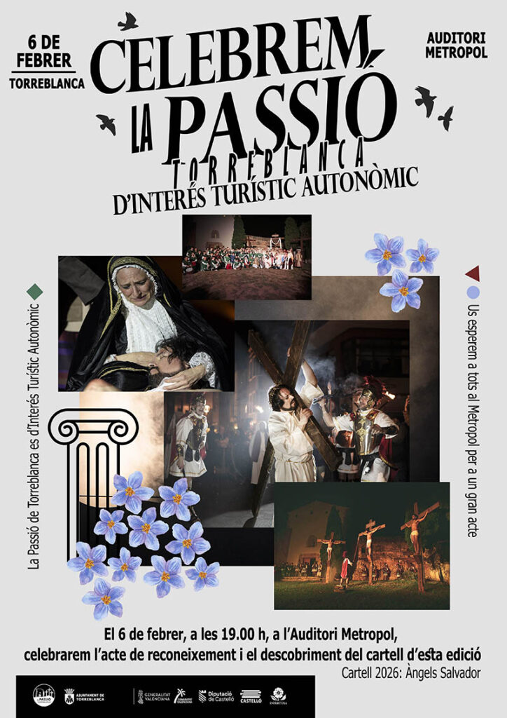 Durante el acto se llevará a cabo el reconocimiento oficial a la Passió de Torreblanca y el descubrimiento del cartel anunciador de la edición de este año, en una cita que marcará un nuevo hito en la historia de esta emblemática representación.