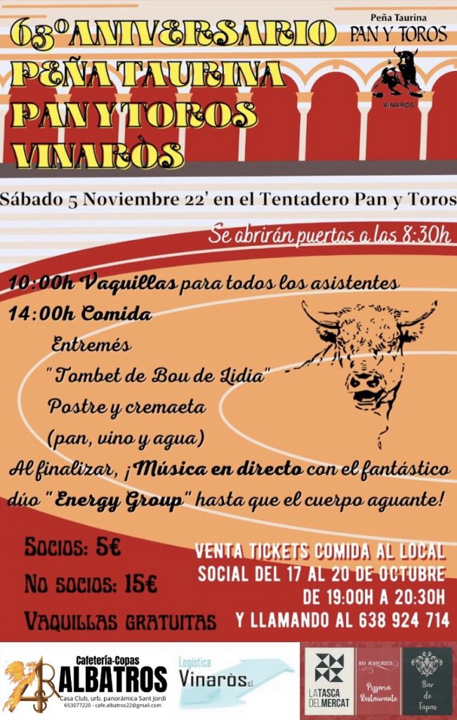 Los tickets para la comida podrán adquirirse del 17 al 20 de octubre en horario de 19:00h a 20:30h en el local social de la Peña y el en el teléfono: 638924714.