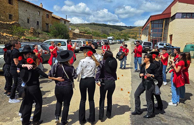 La celebración en Mosqueruela permitió a la novia y sus amigas disfrutar del entorno rural y del patrimonio histórico de la comarca de Gúdar-Javalambre, conocida por sus calles empedradas y su arquitectura tradicional.