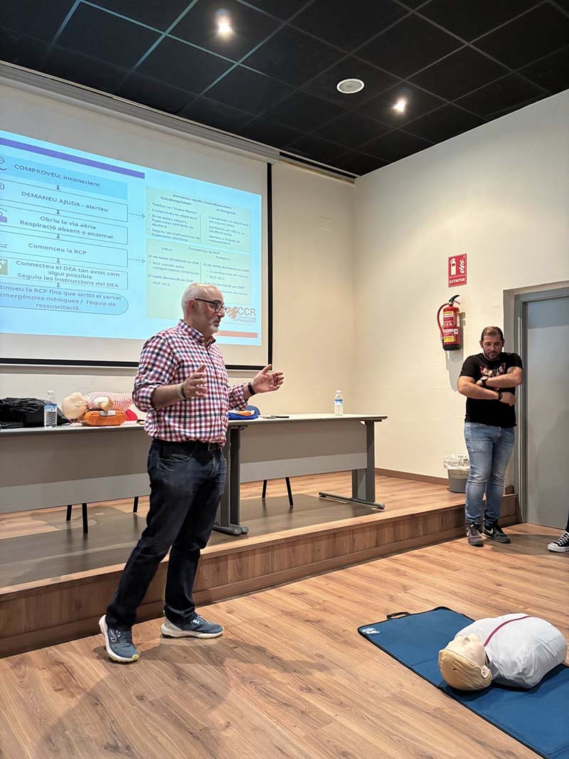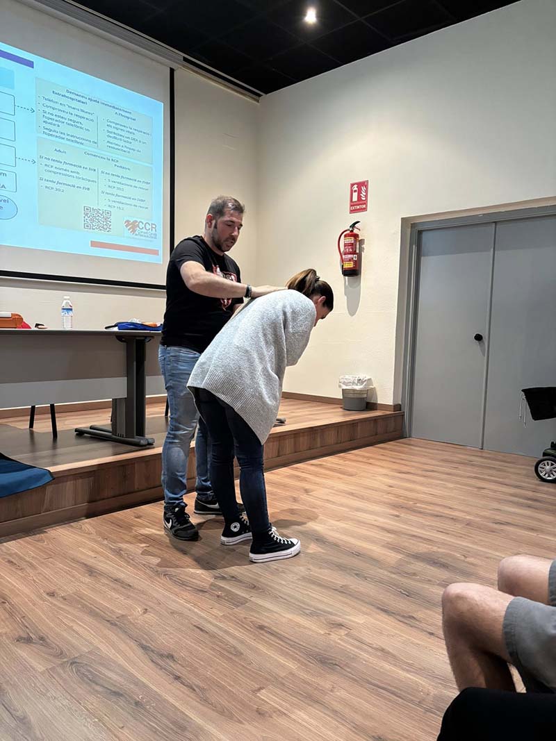 La sessió va anar a càrrec de Jordi Bort i Enrique Marzà, que van oferir una explicació clara i accessible sobre com actuar davant situacions d’emergència com aturades cardiorespiratòries o obstruccions de les vies respiratòries.