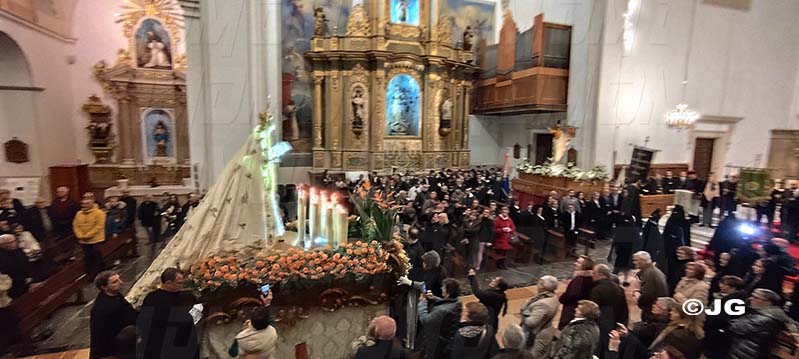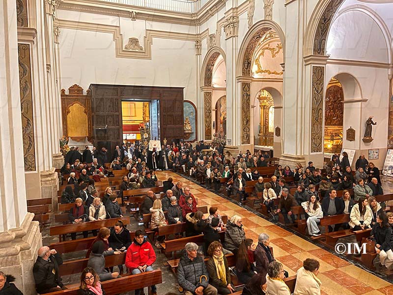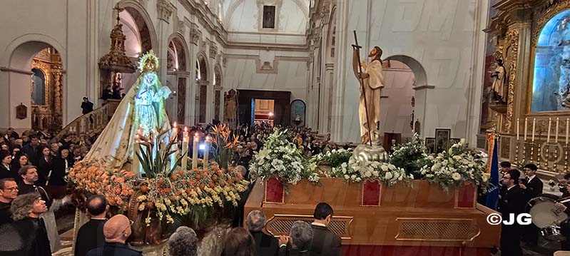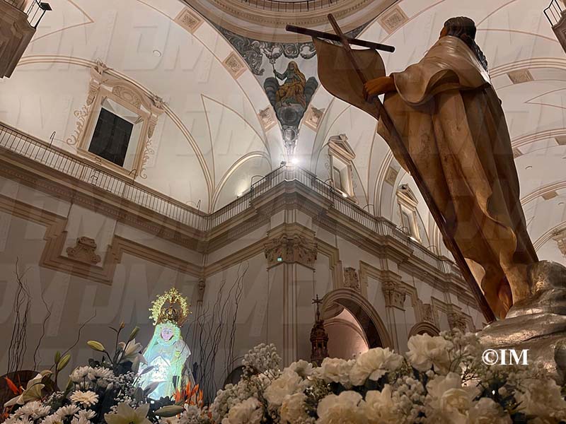 La pluja ha impedit que la processó pogués realitzar-se, per la qual cosa s’ha celebrat una trobada religiosa dins del temple parroquial de Sant Bartomeu.